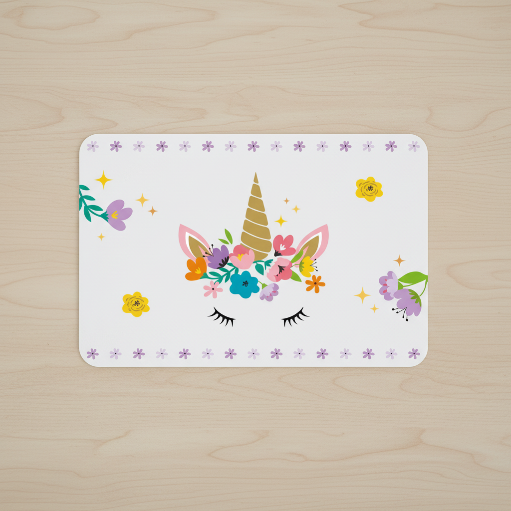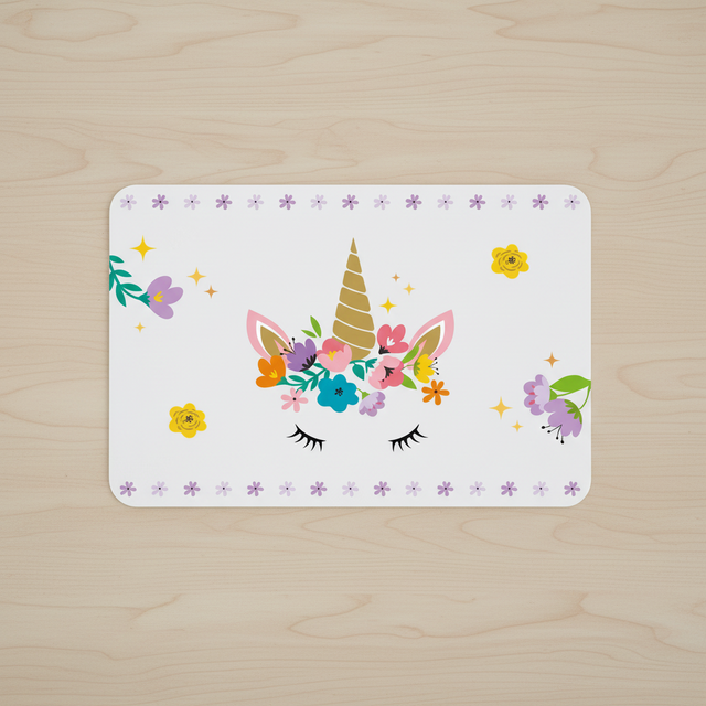 Gjør måltidene litt morsommere med denne transparente bordbrikken med enhjørningmotiv. Den beskytter bordet mot søl og riper og er samtidig enkel å tørke av etter bruk. Perfekt til både frokost, middag og kreative aktiviteter som tegning og lek.