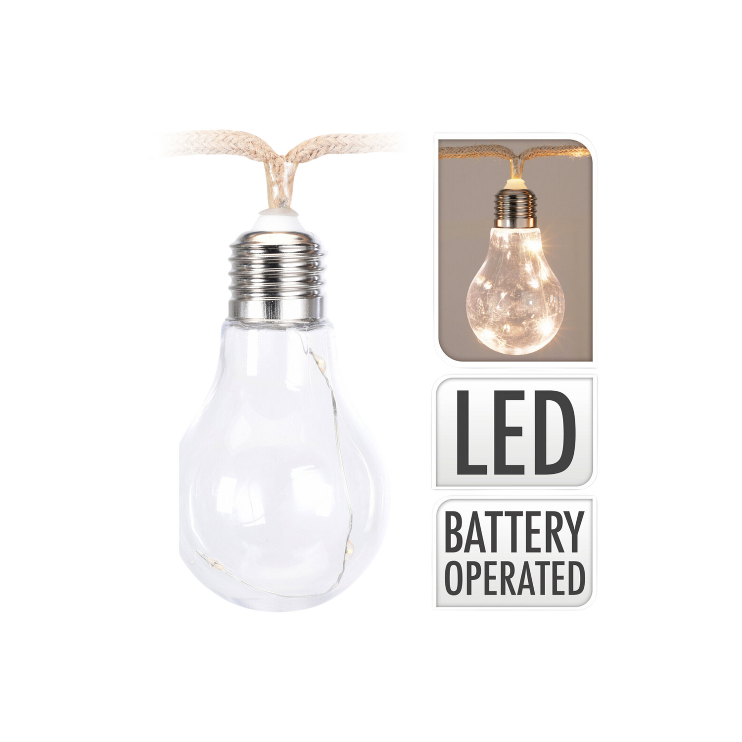 Her lyspære har tre små innebygde LED-lys som lyser med et varmt og koselig skinn, og den henges enkelt opp. Den drives av batteri, så du slipper ledninger og stikkontakter. ideell for steder uten strømtilgang eller til midlertidig pynt.