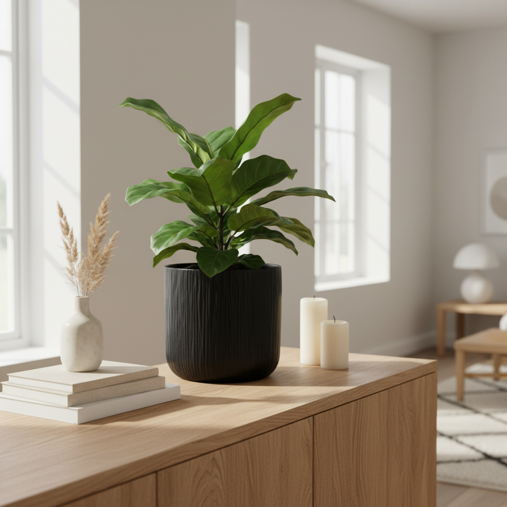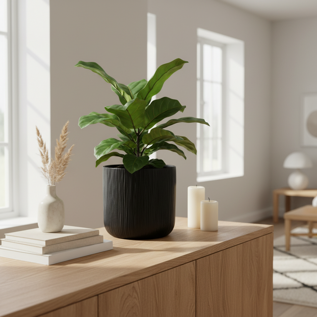 Løft frem plantene dine med en elegant blomsterpotte i sort keramikk. Med sitt moderne design passer den perfekt inn i skandinaviske og minimalistiske hjem. Den matte overflaten gir et eksklusivt preg, samtidig som den fremhever grønne planter og blomster på en ren måte.