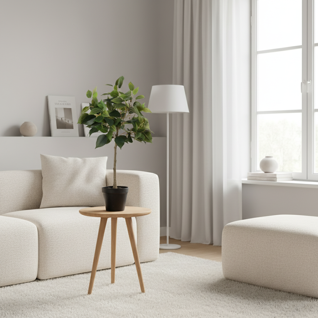 Skap en frisk og stilfull atmosfære med Mr. Plant Fikus Benjamin. Denne kunstige planten har et realistisk utseende med frodige blader og en naturtro stamme. Perfekt for å tilføre et grønt preg til hjemmet eller kontoret – helt uten vedlikehold.