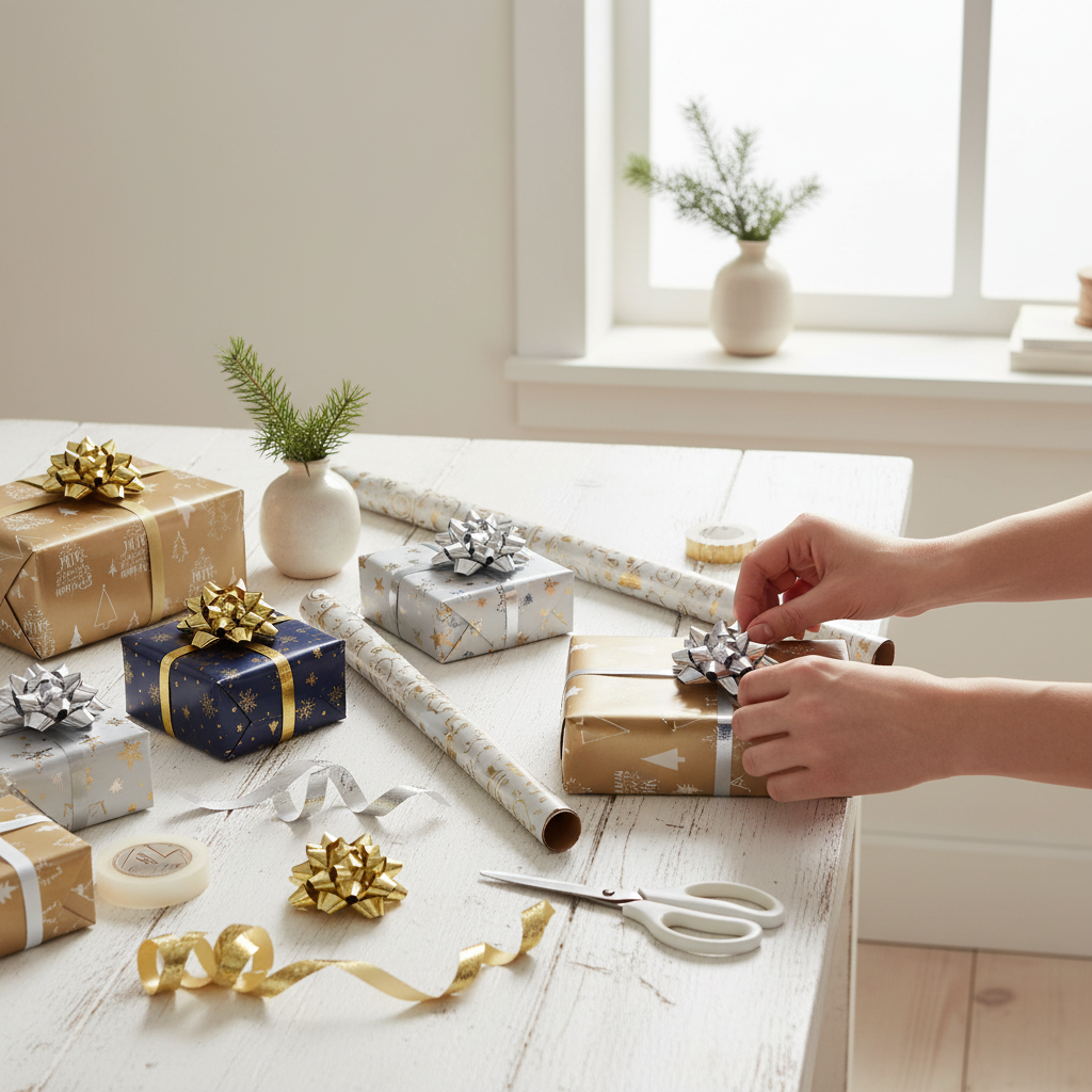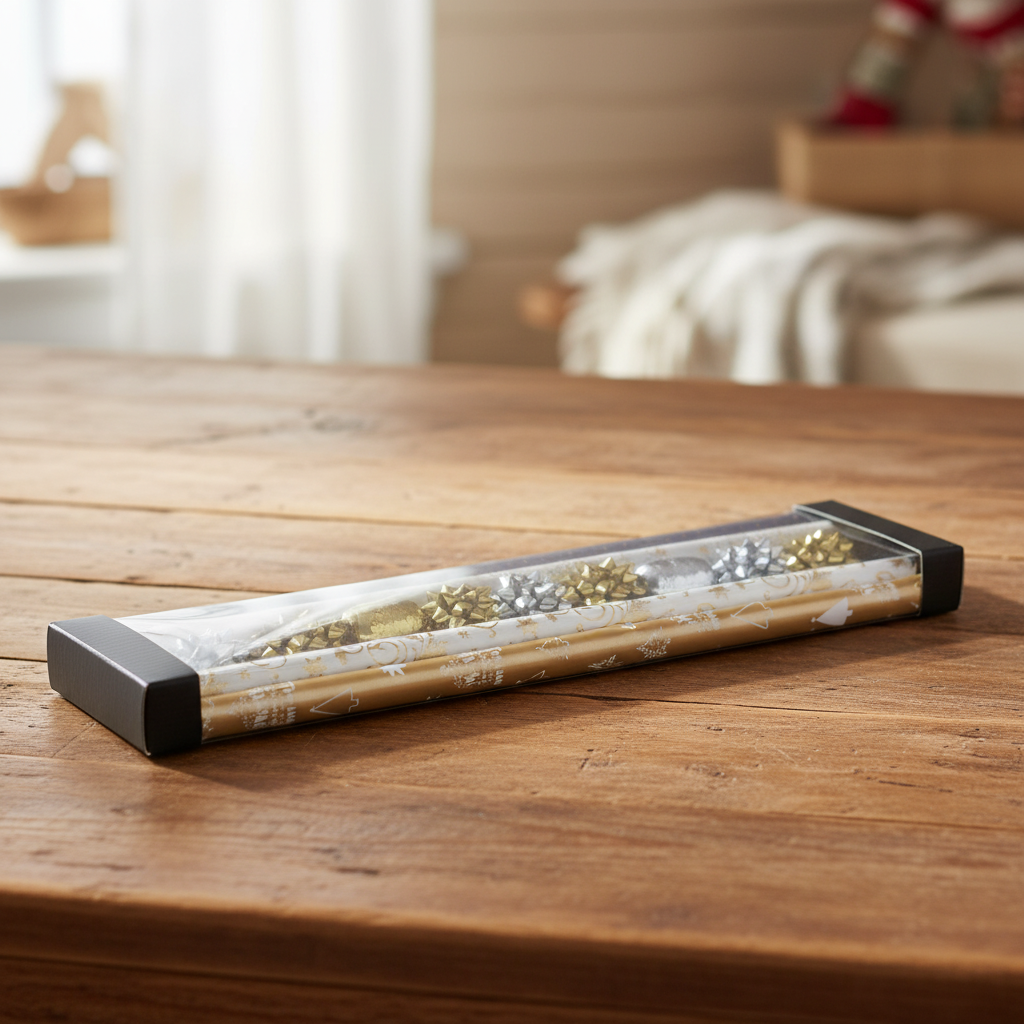 Her får du alt du trenger for å skape vakre gaver under treet. Papiret passer både til store og små pakker, og kan enkelt kombineres med matchende gavebånd og sløyfer.