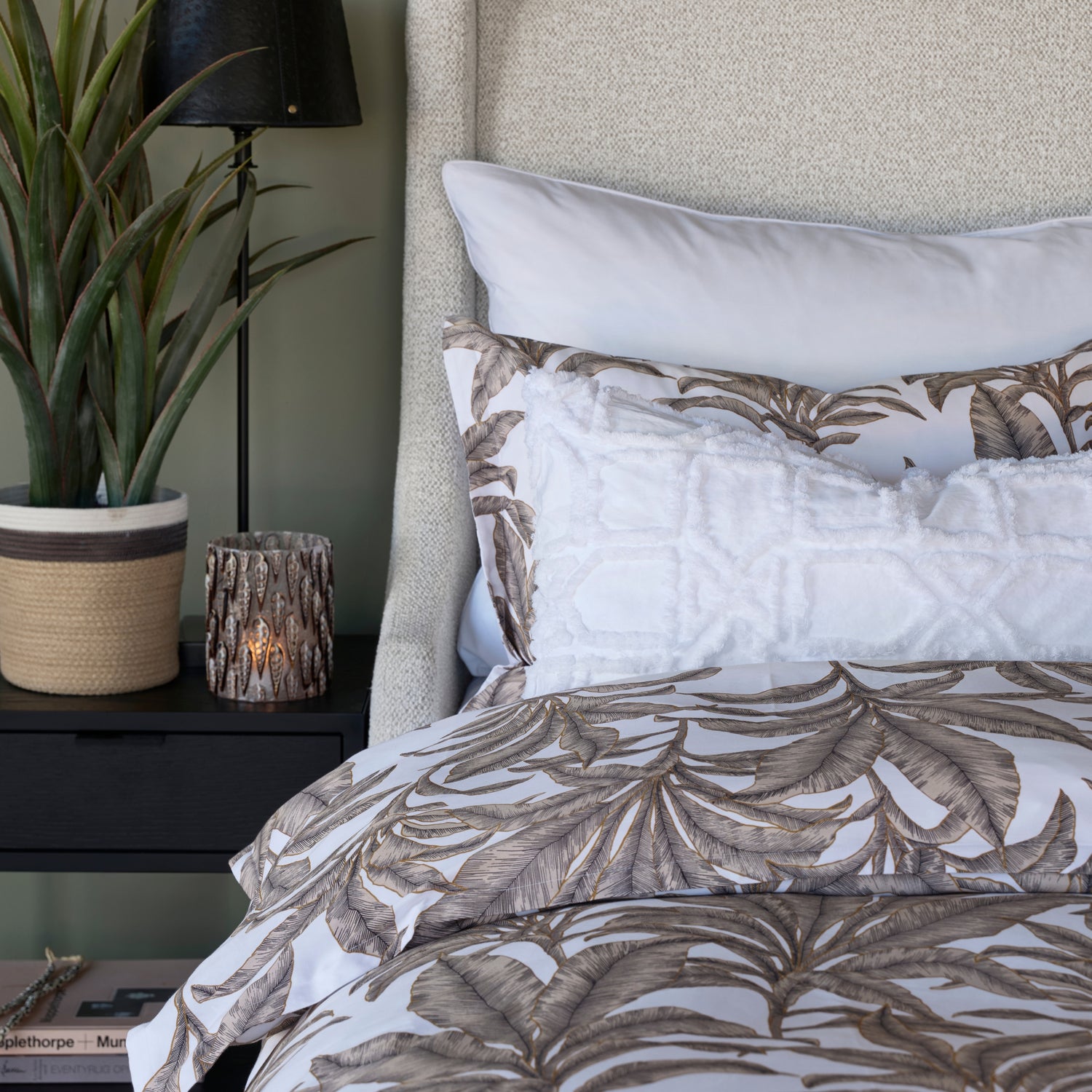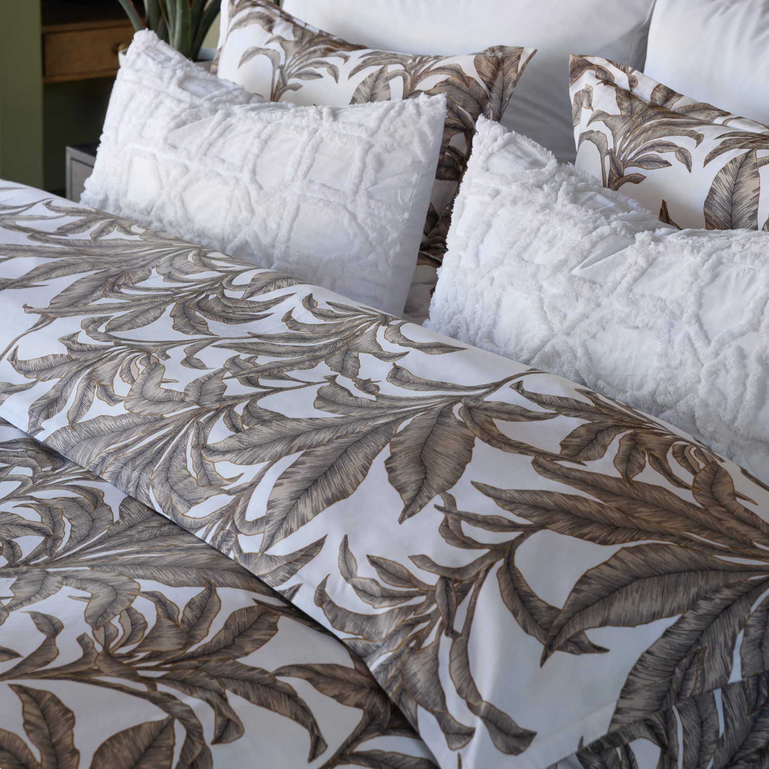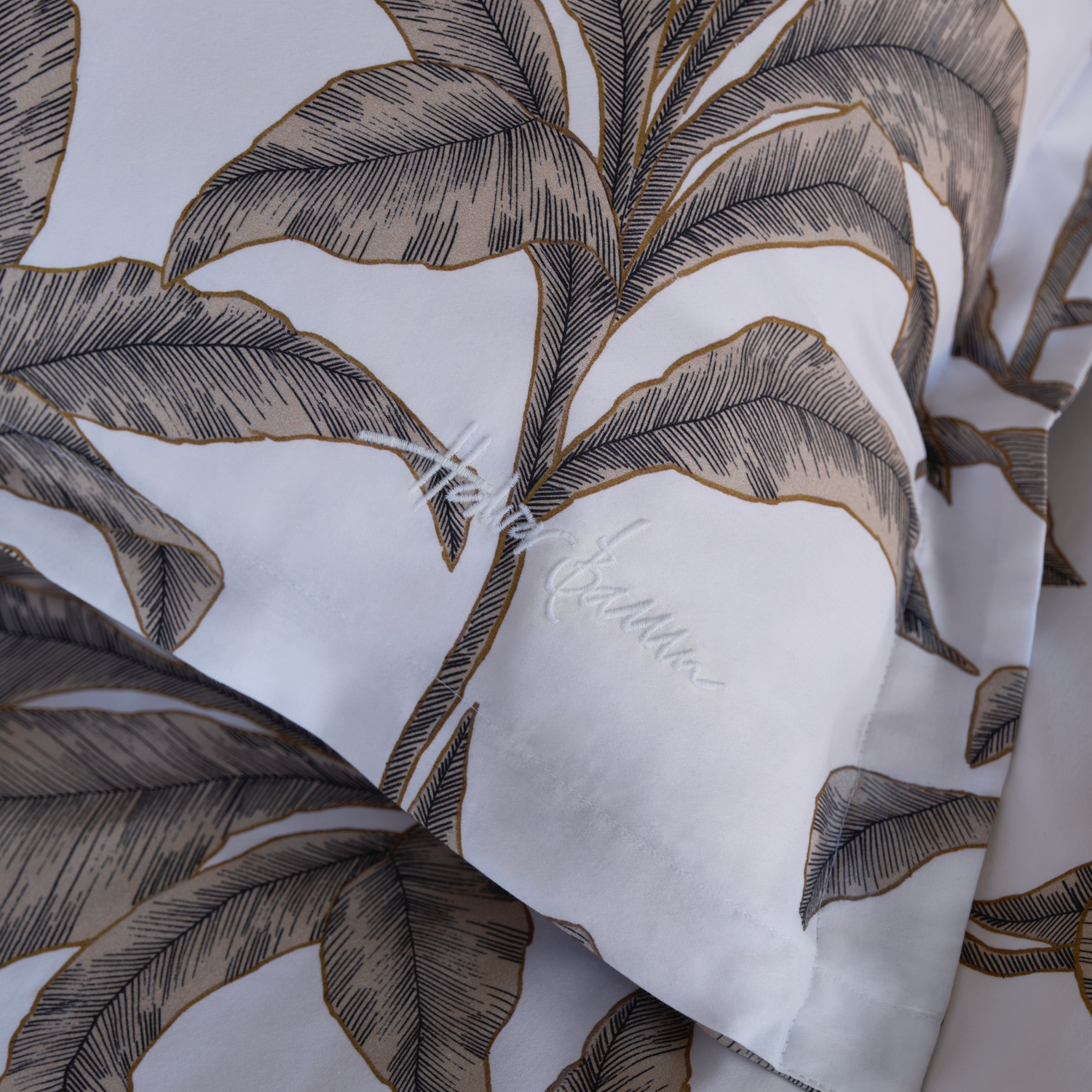 Halvor Bakke Babylonstoren sengesett i beige med palmeblader