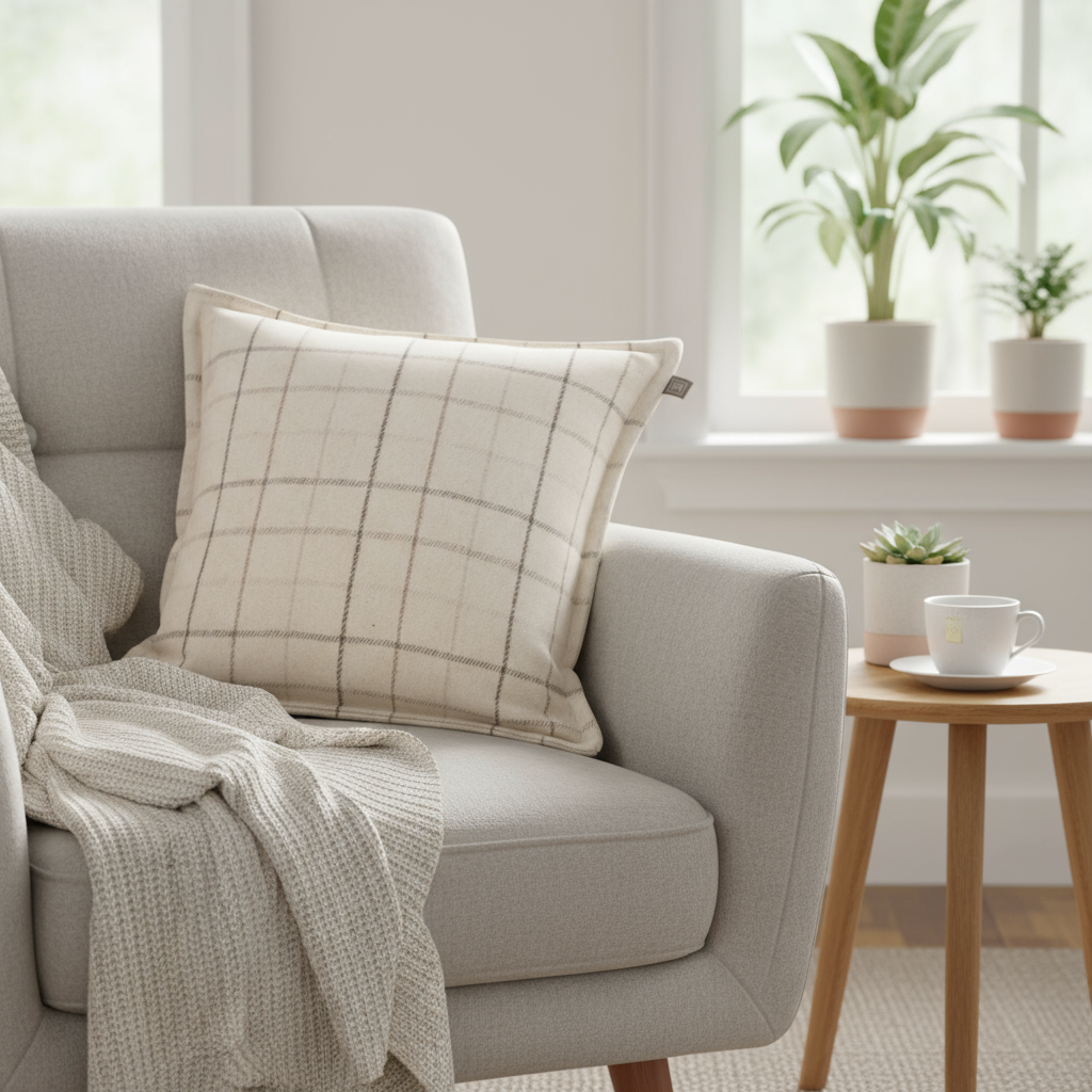 Gi rommet et lunt uttrykk med Bisho putetrekk fra Halvor Bakke. Trekket er laget i resirkulert ull med smale striper i varme bruntoner mot en naturhvit bunn. Den myke ullstrukturen gir både tekstur og komfort, og passer perfekt i sofa, stol eller som et mykt innslag på sengen.