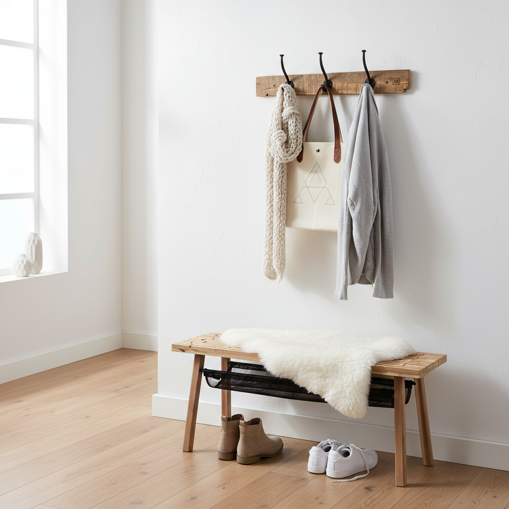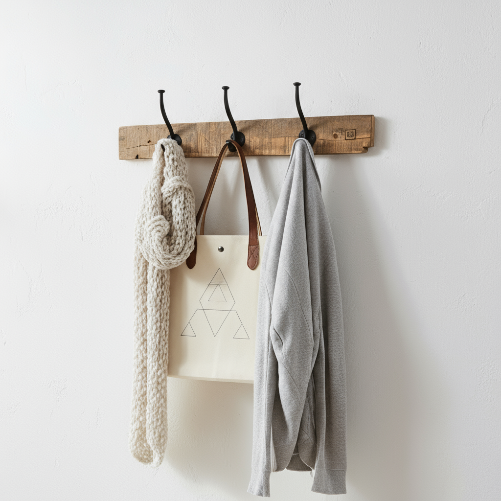 De tre metallkrokene gir et solid og funksjonelt oppheng, perfekt til jakker, skjerf eller vesker. Hver knaggrekke er unik, med små variasjoner i farge, tekstur og struktur.