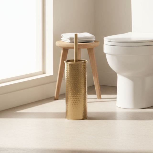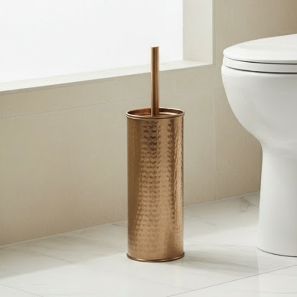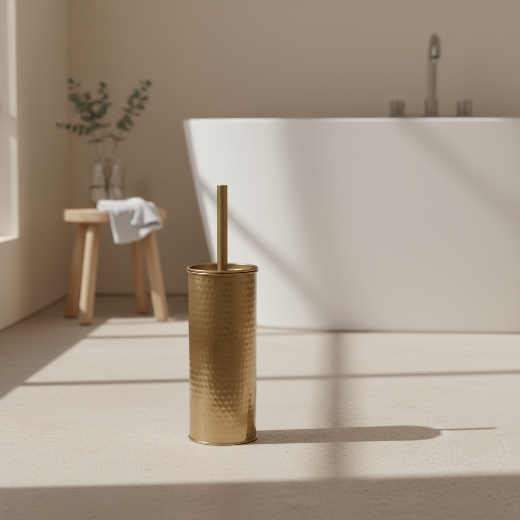 Eksklusiv toalettbørsteholder fra Halvor Bakke i bronsefarget metall. Den blanke overflaten og det stramme designet gir et moderne og luksuriøst uttrykk.