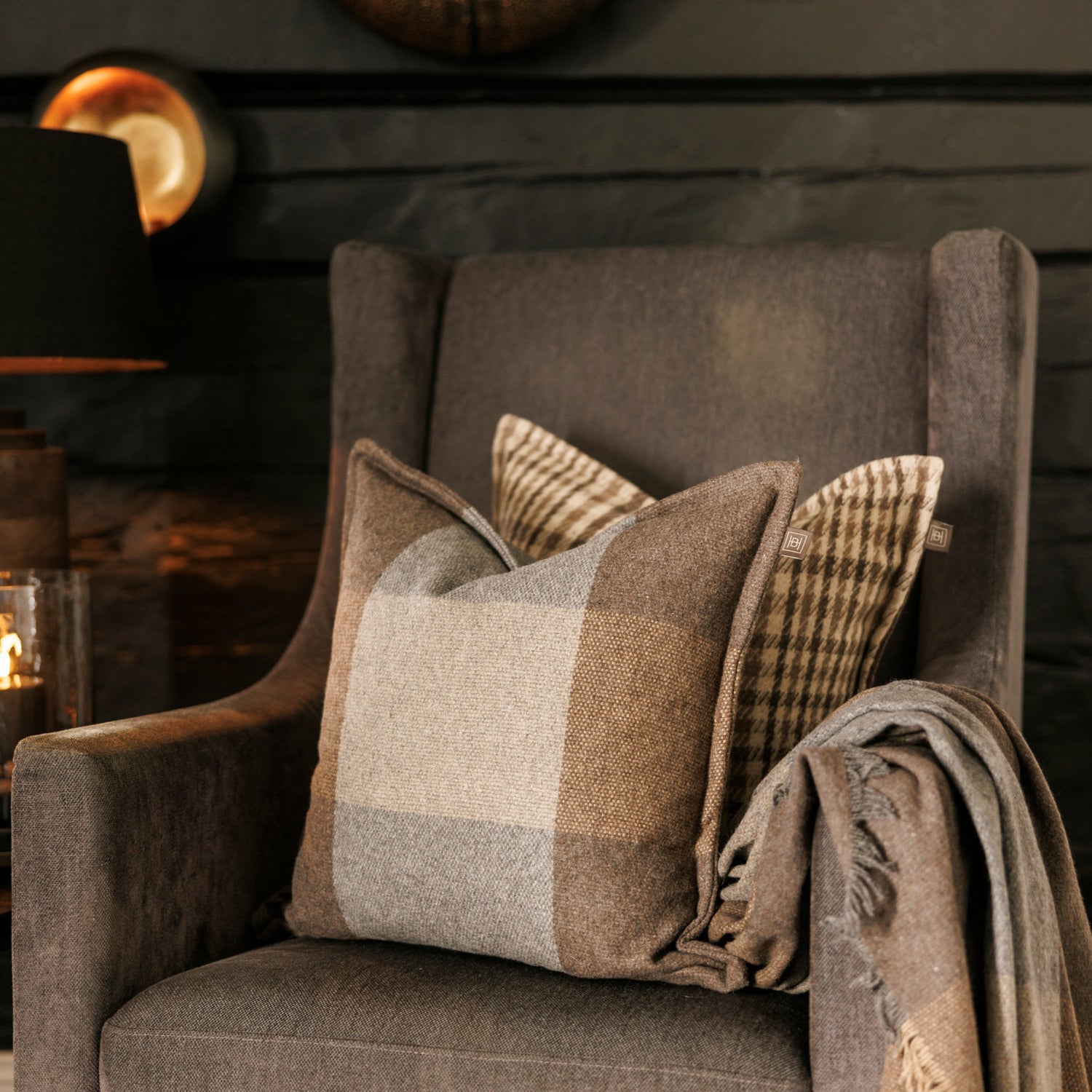 Skap en lun og innbydende atmosfære med Ulundi putetrekk fra Halvor Bakke. Trekket er laget i 100% resirkulert ull og har et klassisk rutemønster i nyanser av beige, brun og grå. Den myke ullkvaliteten gir varme og komfort, mens de jordnære tonene passer perfekt i både moderne og tradisjonelle interiør.