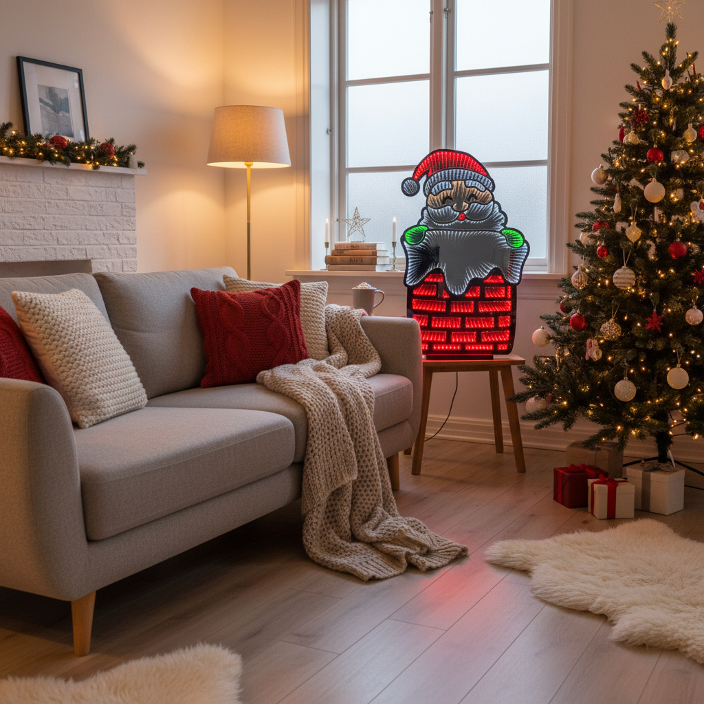Gjør julen ekstra magisk med Infinity speil Nisse i pipe. Dette unike dekorelementet kombinerer lekne julemotiver med moderne lyseffekter. Når lyset tennes, skaper speilet en illusjon av uendelig dybde som gjør at nissen virkelig ser ut til å være på vei ned pipa.