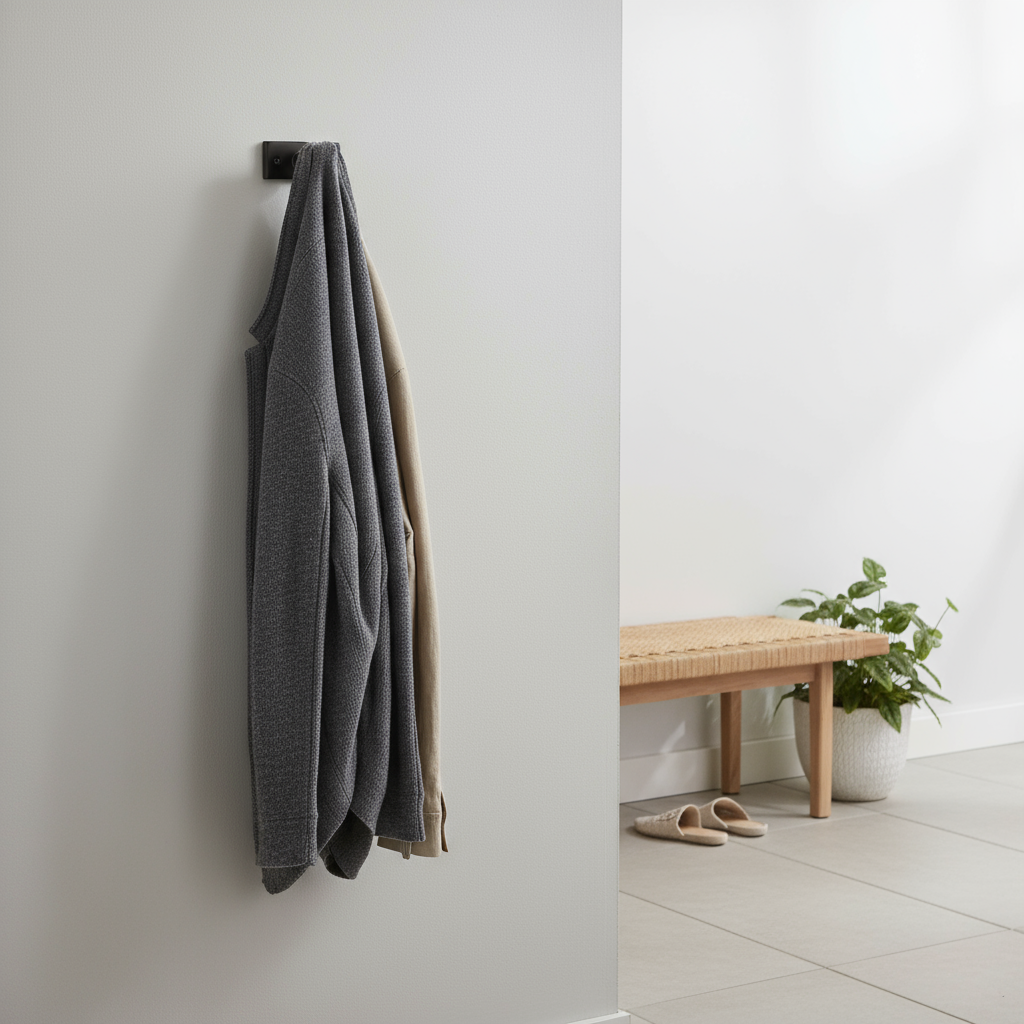 Knaggen er laget i solid metall som tåler daglig bruk og er lett å montere på vegg. Kombiner flere for et helhetlig opphengssystem i gangen, på badet eller soverommet.