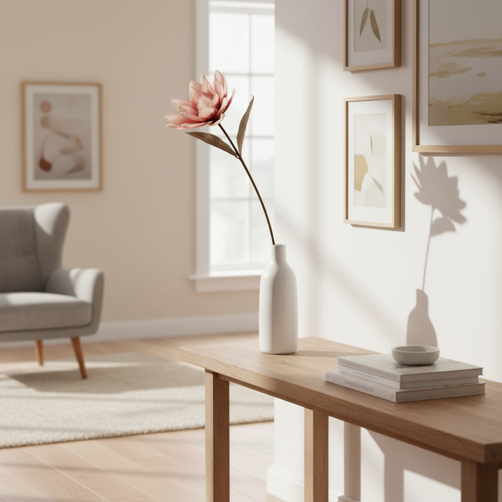 Gi hjemmet et friskt og romantisk preg med denne vakre kvisten med rosa blomst. Den naturtro utformingen gjør at blomsten ser ekte ut, uten behov for vanning eller stell. Perfekt i en høy vase alene, eller kombinert med flere kvister for en frodig bukett.