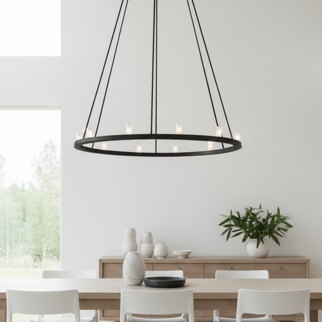 Utstyrt med 12 lyspærer (G9/G4), som gir godt og behagelig lys, perfekt over spisebord, i stue eller rom med høyt tak.