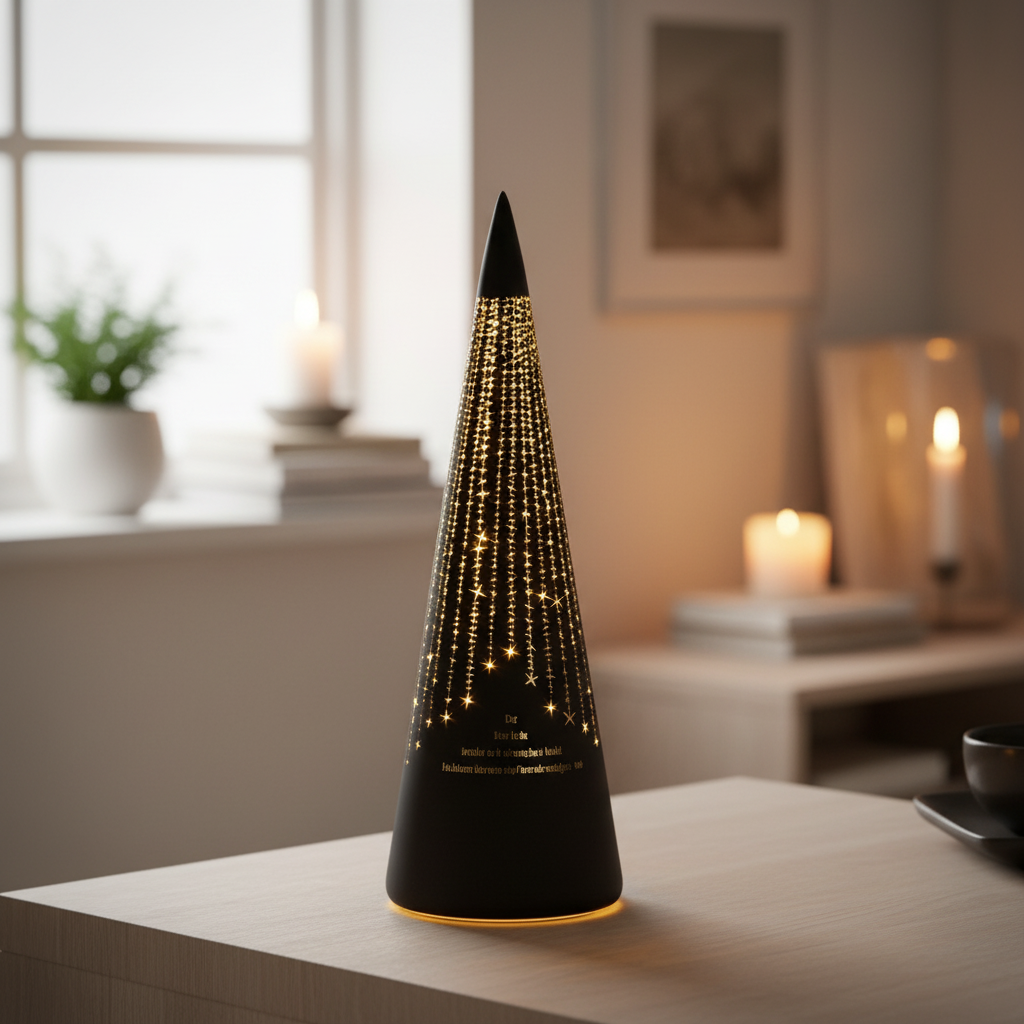 Lyslykt LED "Det lyser..." Sort kjegle 30 cm