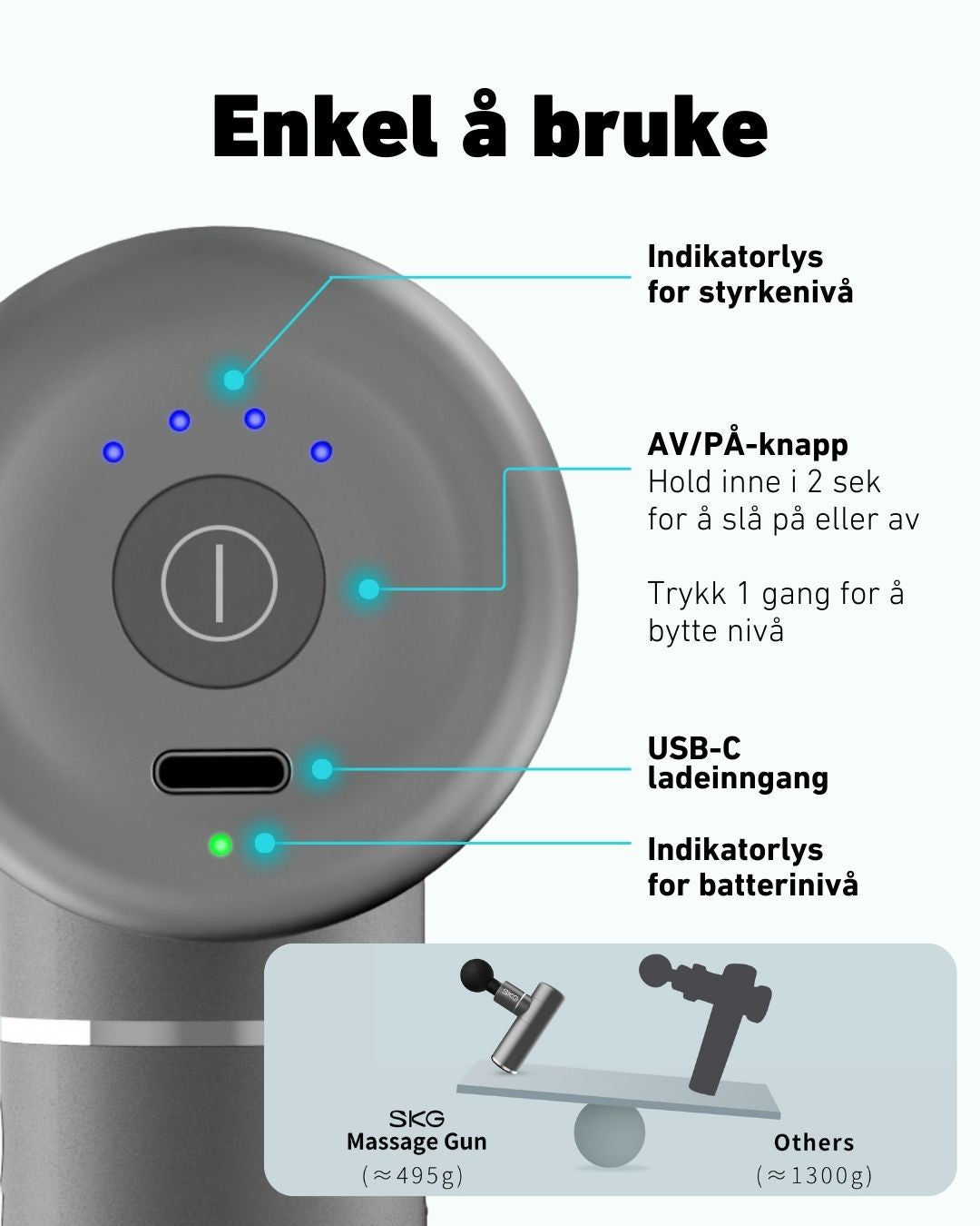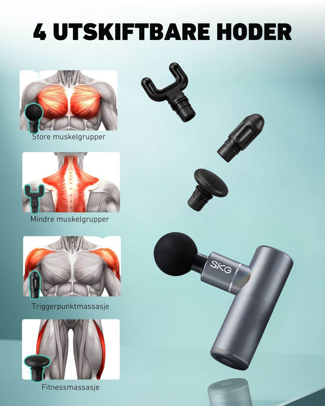 Mange massasjepistoler er laget for generell velvære, men SKG F3 grå er skapt med tanke på idrett og prestasjon. Den kombinerer kraft, stillegående drift og lav vekt i et robust aluminiumsdesign. Perfekt for deg som tar trening og restitusjon på alvor.