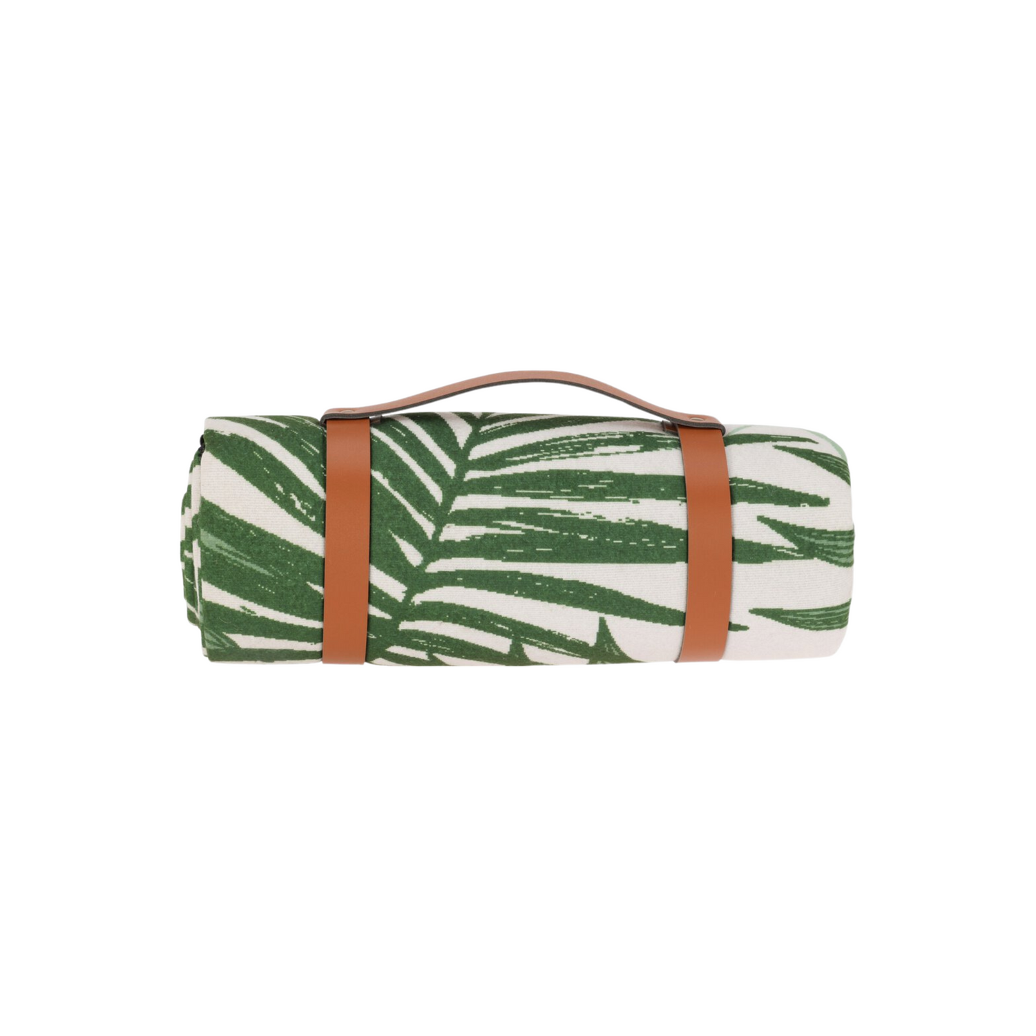 Palme piknikteppe har et friskt og tropisk design med grønne palmeblader, og er det perfekte følget til strandturer, hagekos eller piknik i parken. Teppet kan enkelt rulles sammen og festes med håndtaket som følger med, perfekt for å ta med seg på farten.