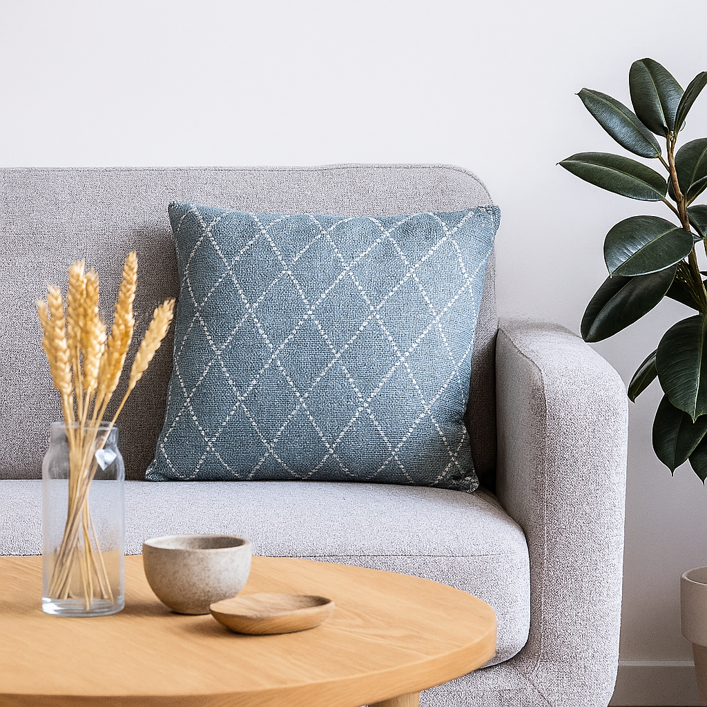 Oppgrader hjemmet ditt med dette stilrene putetrekket i jaquard bomull i en vakker blå nyanse. Det firkantede mønsteret gir putetrekket en moderne og tidløs look som passer perfekt til både sofa, lenestol og seng.
