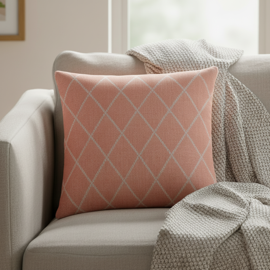 Gi sofaen eller sengen et mykere uttrykk med dette putetrekket i jacquardvevd bomull. Den fine strukturen gir en behagelig overflate og rosafargen tilfører varme til rommet.