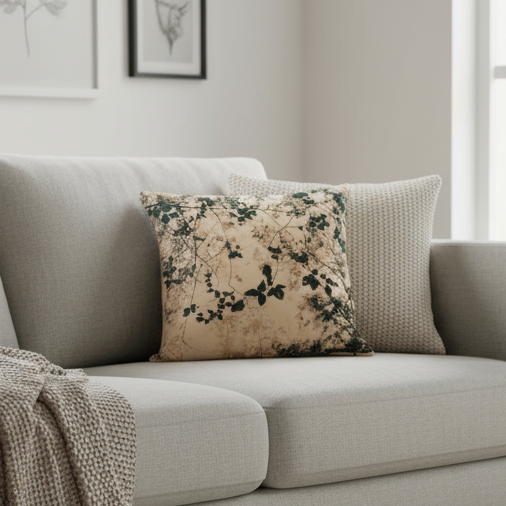 Dekorativt putetrekk i myk velur med botanisk mønster i petrolblå nyanser. Det lekre fargespillet og den glatte overflaten gir et sofistikert uttrykk som passer perfekt i stuen, på soverommet eller i en loungekrok.