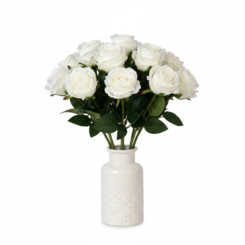 Løft interiøret med en klassisk kunstig rose fra Mr. Plant. Denne hvite rosen er nøye utformet for å gjenskape det delikate og elegante uttrykket til en ekte rose, men uten behov for stell eller vanning.