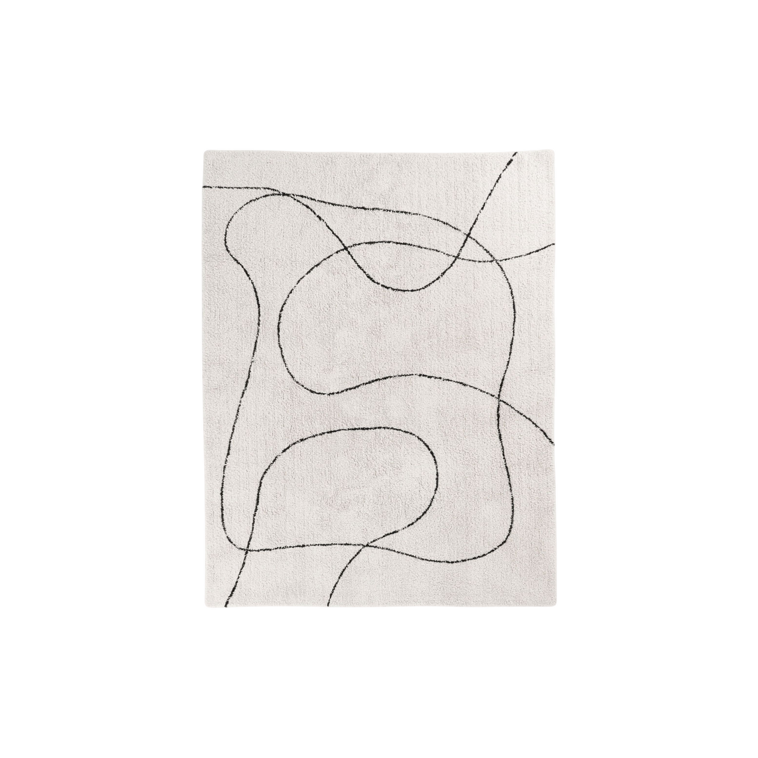 Gi hjemmet ditt et stilrent og moderne preg med Tampa teppe. Dette myke og behagelige gulvteppet har en lys base med et minimalistisk, håndtegnet mønster i sort som tilfører et kunstnerisk og trendy uttrykk.