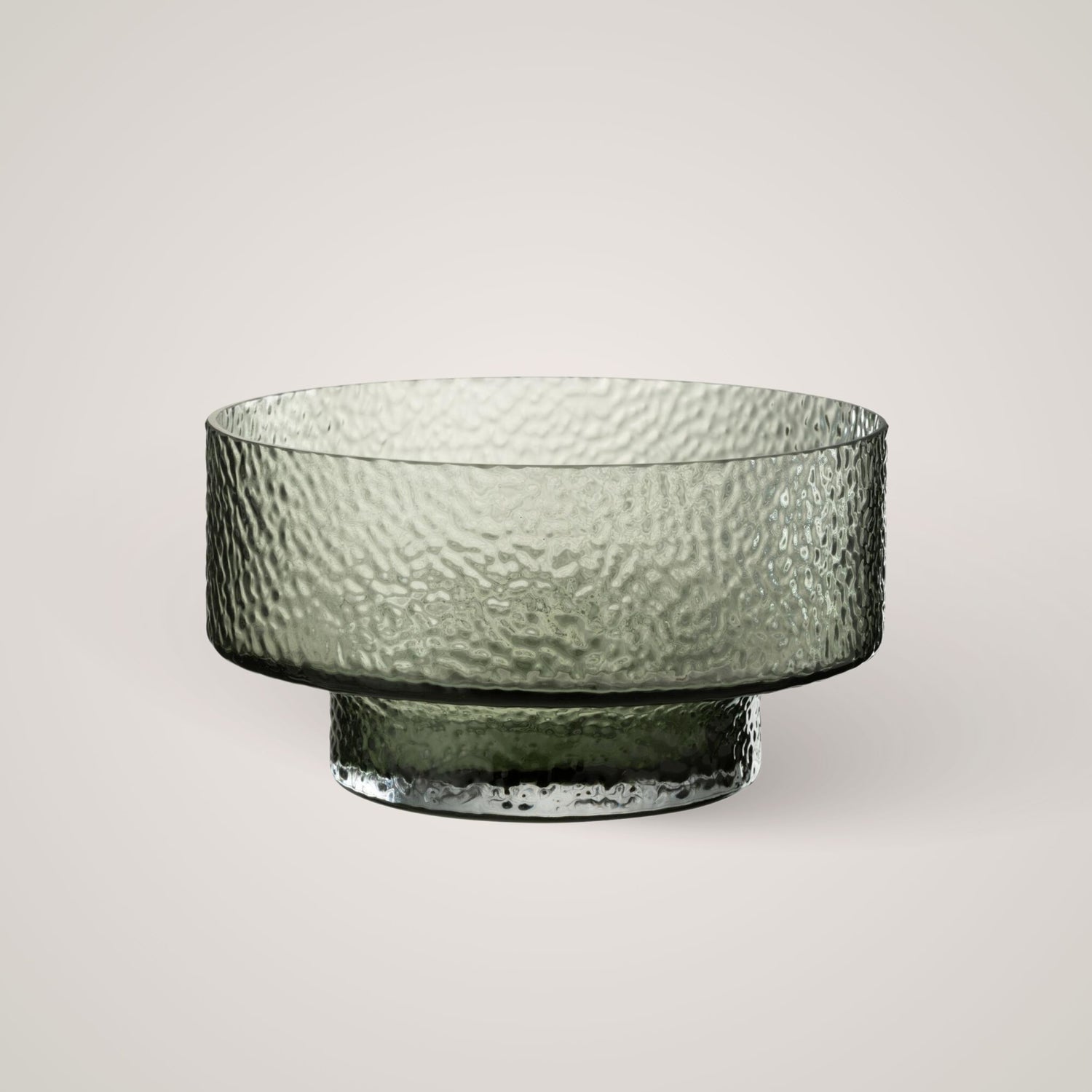 Denne dekorative vasen er en moderne glassbolle med en unik, hamret tekstur som gir et eksklusivt og tidløst uttrykk. Den er laget av grønnfarget glass, som skaper en beroligende og sofistikert atmosfære i ethvert rom.