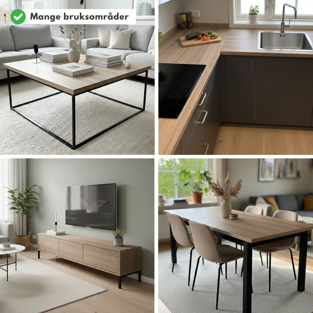 Premium Bristol oak brukes ofte på kjøkkenbenk, spisebord og trapper når man ønsker en lysere treoverflate. Den er også et populært valg til kommoder, hyller og skrivebord som trenger et nytt uttrykk.