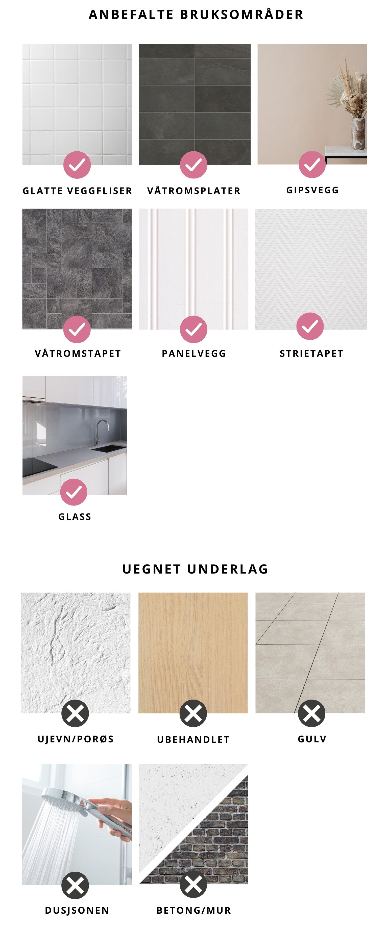 - Underlag: Glatte og rene flater