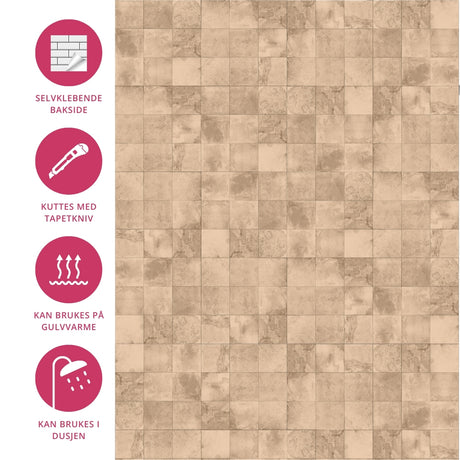 Translation missing: nb.products.product.price.sale_price 714 kr Translation missing: nb.products.product.price.regular_price 1.190 krTranslation missing: nb.products.product.price.unit_pricePå lager8-pk Bodø sand selvklebende fliser