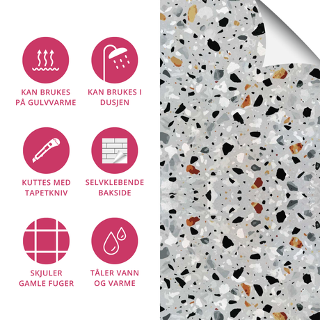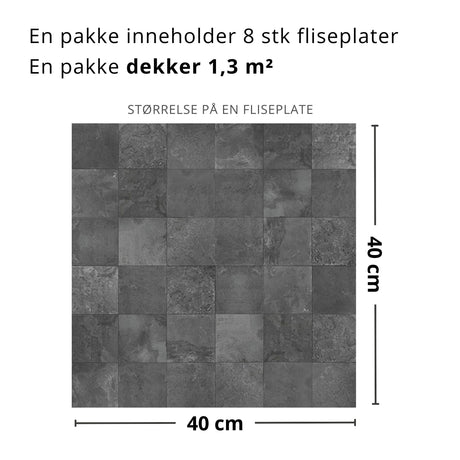 Du trenger ikke rive gamle fliser. Flisene kan legges direkte på eksisterende flater. Så lenge underlaget er slett, sitter de godt. Dette gjør dem ideelle for både små og store prosjekter. Også perfekt for leiebolig, hytter eller midlertidige løsninger.