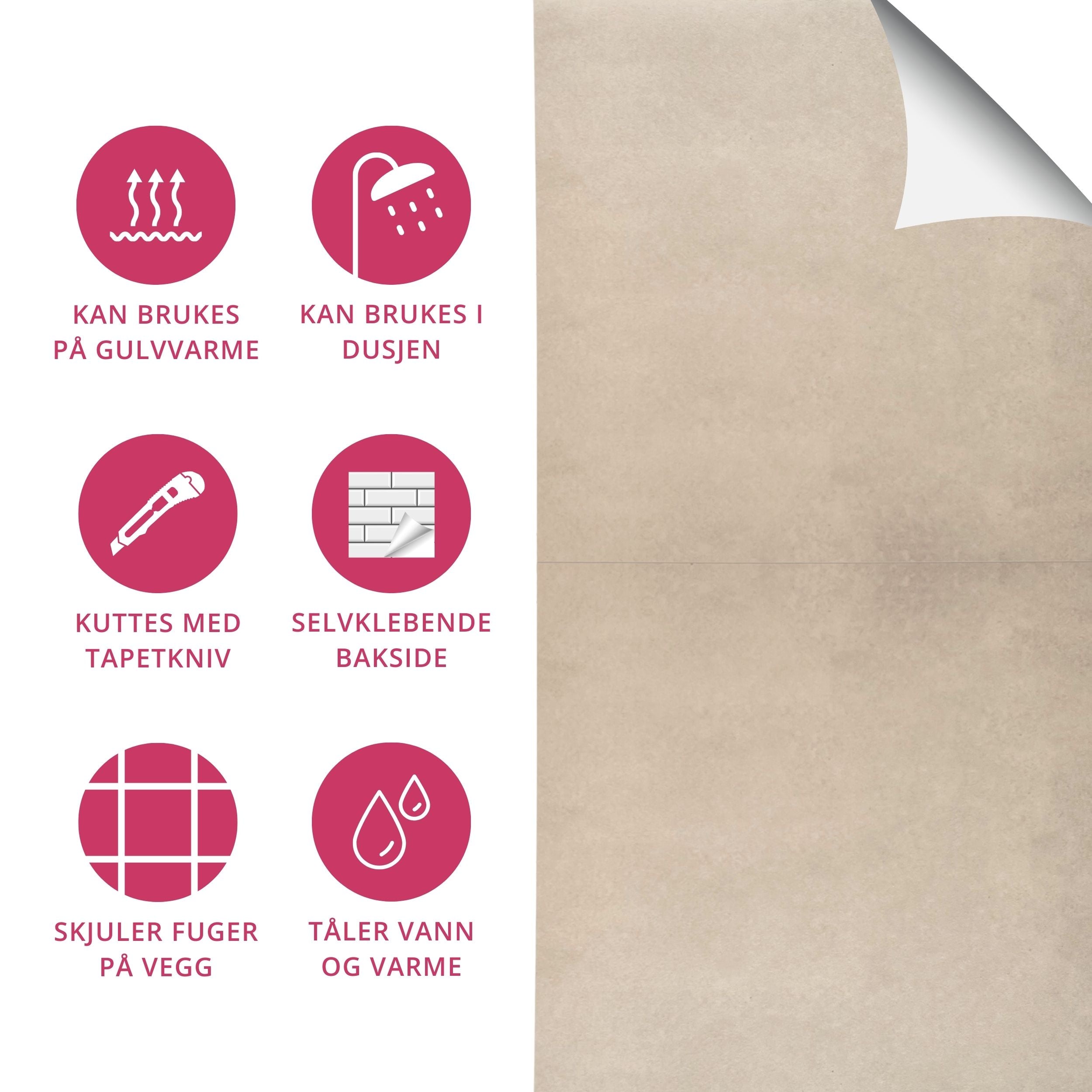 Har du lyst på nytt gulv på badet? Eller kanskje du har lyst på nye fliser i dusjen? Endelig er løsningen her! Disse innovative selvklebende flisene kan festes rett på ditt gamle underlag, til og med på gulv med varme, laminat og i dusjsonen. Ja - du leste riktig! Disse flisene kan brukes på alle slette underlag på både vegg og gulv.