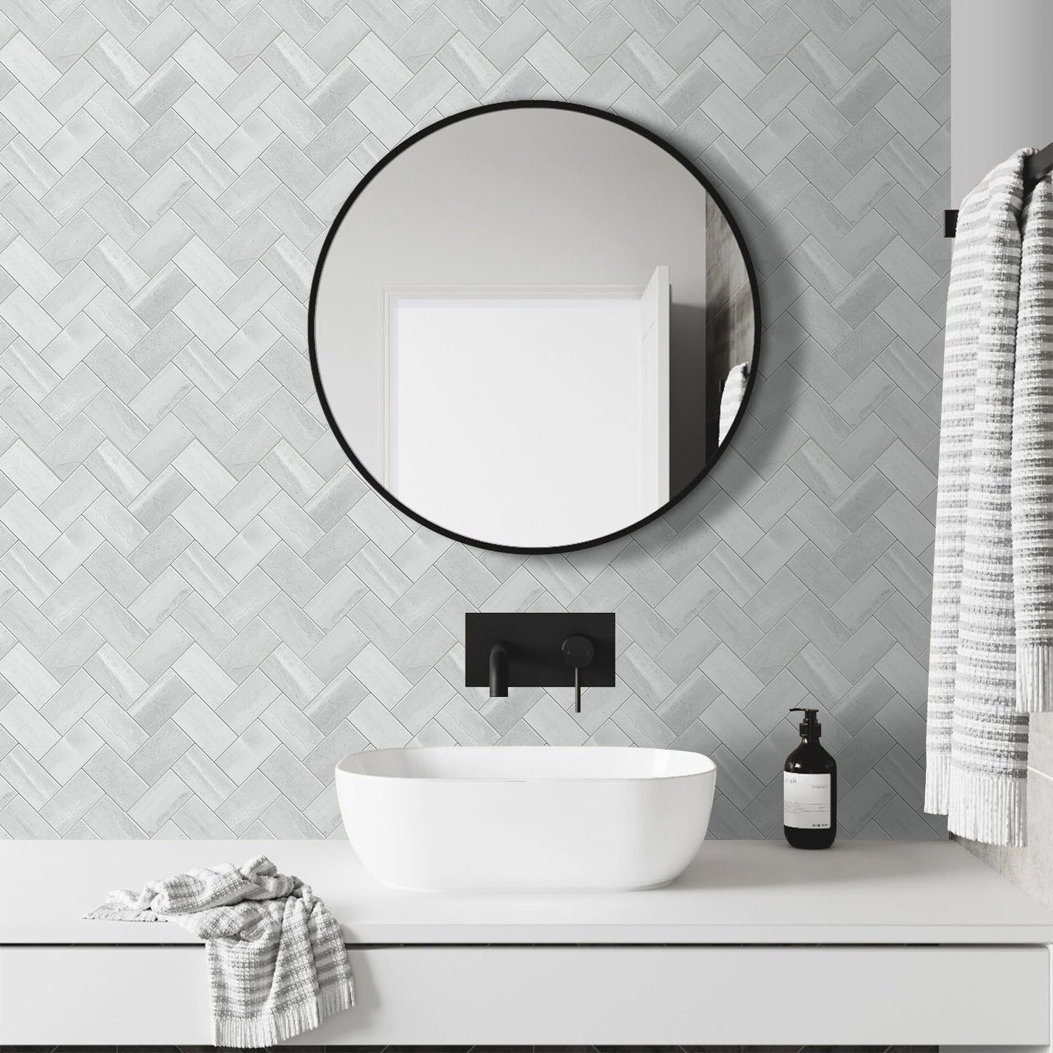 Ønsker du et lunt kjøkken med mer dybde og karakter? Vilde gir deg et tidløst og moderne uttrykk med fliser i en delikat lysegrå steinstruktur. Det klassiske fiskebeinsmønsteret kombinert med de naturlige nyansene gir veggen et organisk liv og et eksklusivt preg som vanligvis forbindes med langt dyrere og mer tidkrevende fliseløsninger.