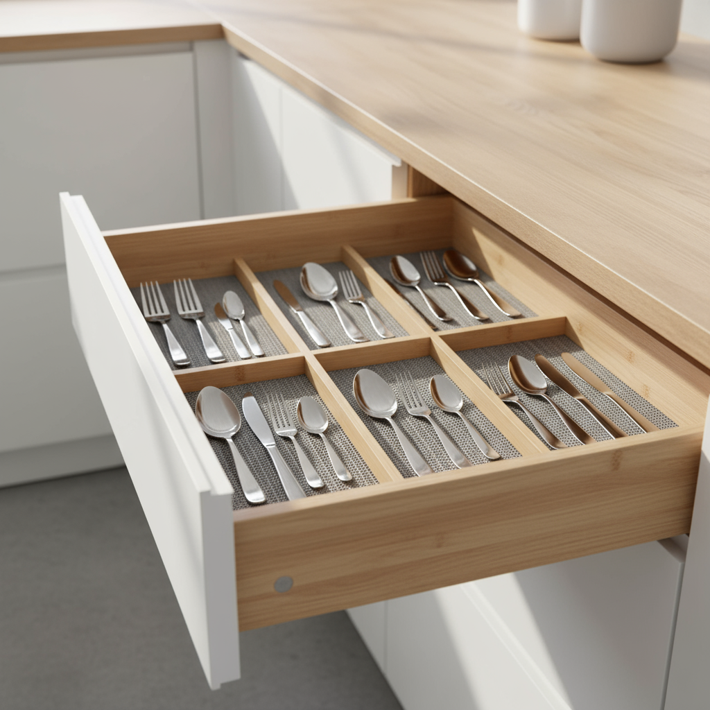 Antisklimatte til kjøkkenskuffer, under vask, skapinnredning, kjøleskap og vitrineskapet m.m. Denne pene antisklimatten passer på å holde tingene dine på plass, samtidig som den demper lyd og forenkler rengjøring. Matten kan enkelt vaskes med en fuktig klut eller vaskes direkte i oppvaskmaskinen på 30 grader. Matten tilpasses din skapinnredning ved å klippe den til ønsket størrelse med en saks.