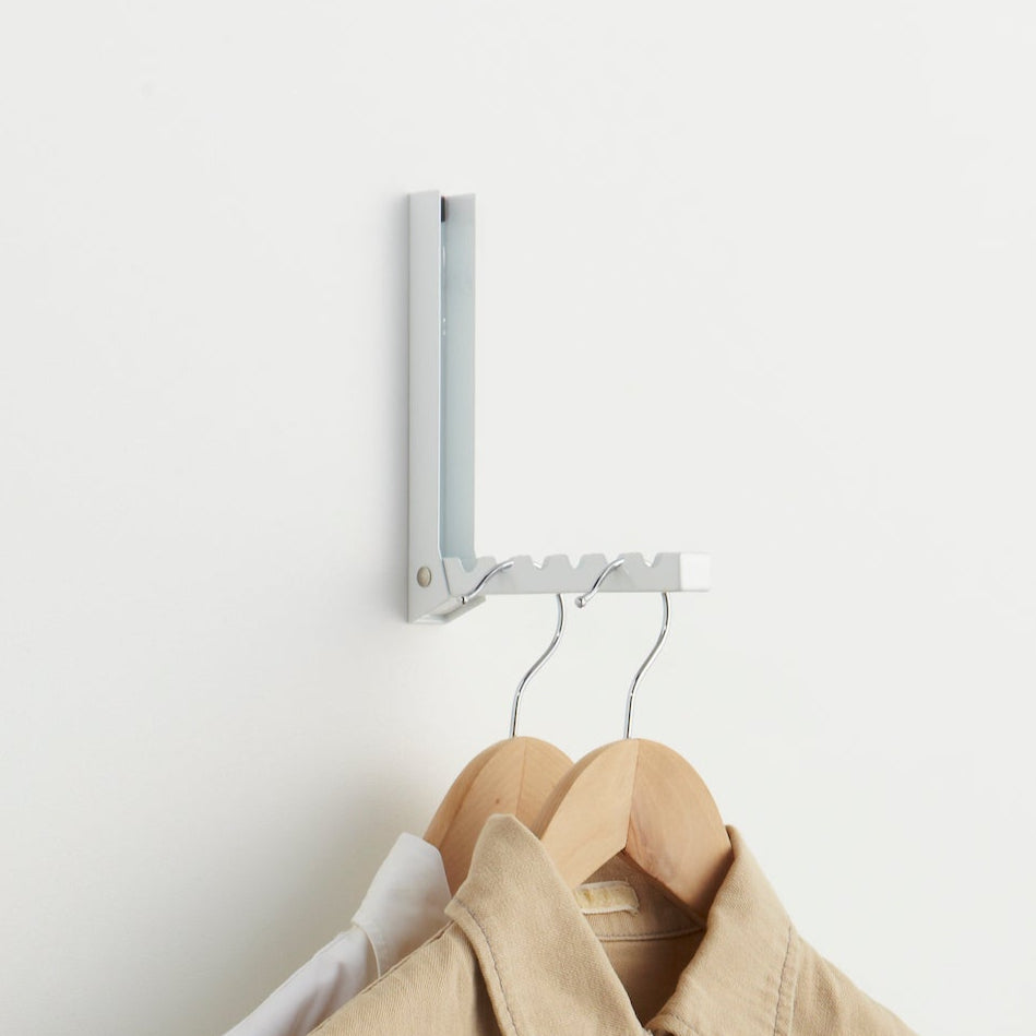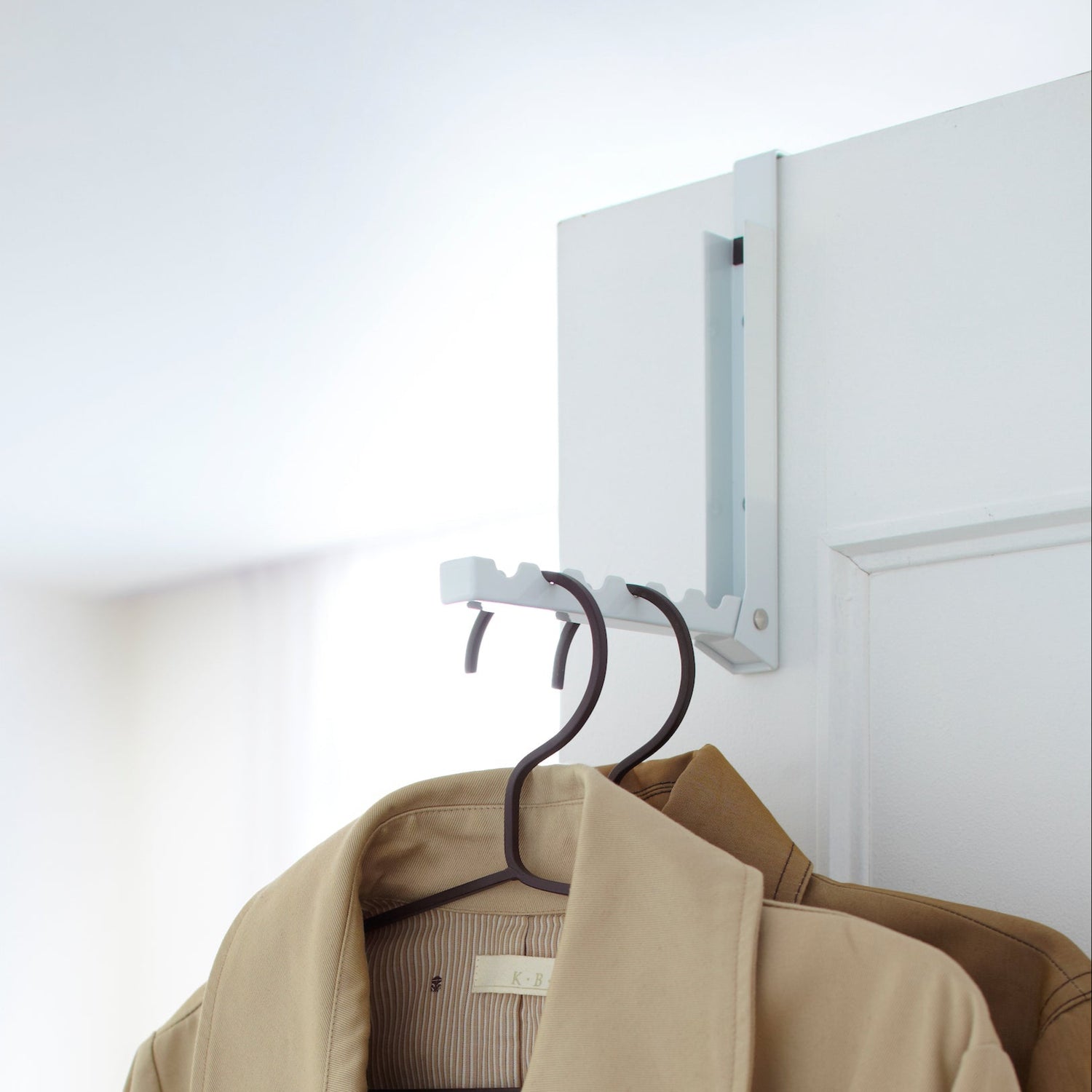 Hvit kleshengerholder for montering over dør eller på vegg.