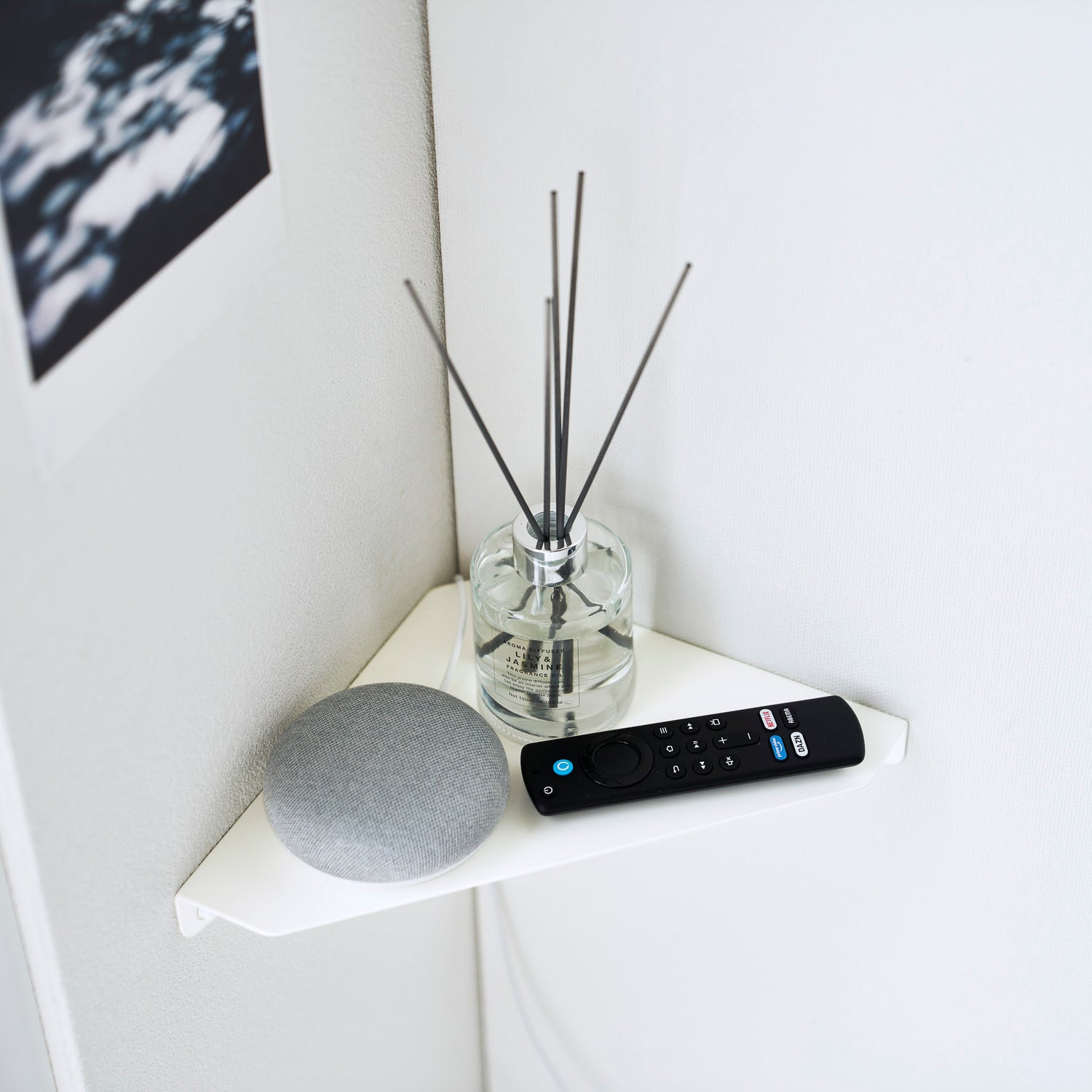 Denne hvite hjørnehyllen er en plassbesparende og stilig løsning for ethvert rom. Den utnytter veggplassen maksimalt og gir deg ekstra lagringsplass uten å ta opp gulvareal. Perfekt til småting som bøker, vekkerklokker, briller, planter eller dekorative elementer.