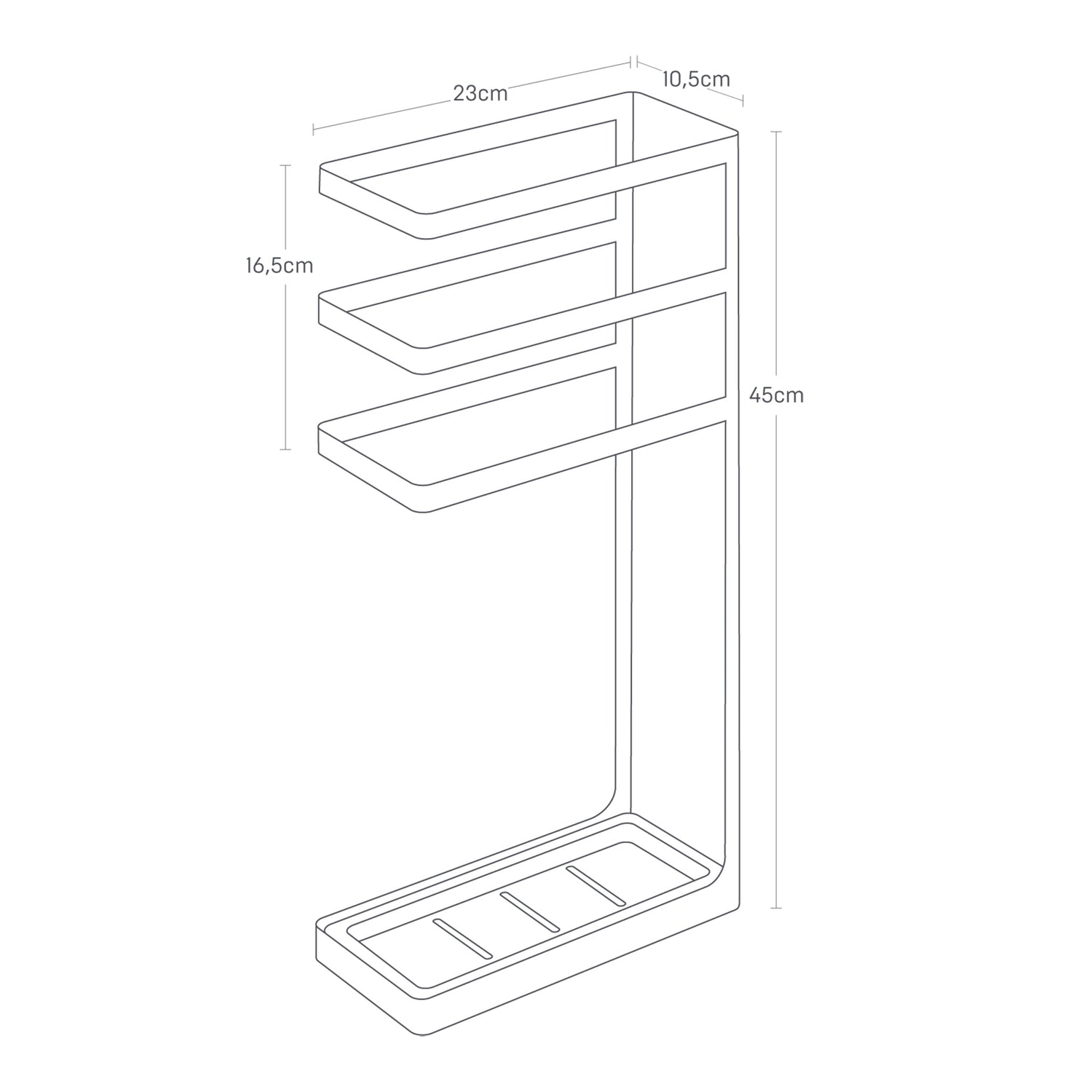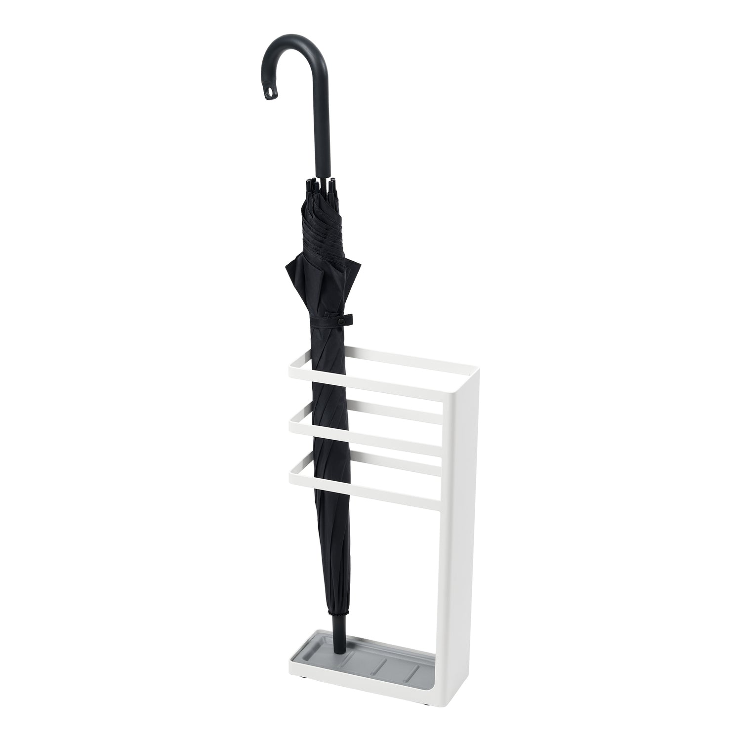 Designet i metall med en moderne, minimalistisk form, passer det perfekt i entré, kontor eller butikk. Stativet har flere ringer som holder paraplyene stående på plass, mens dryppskålen i bunnen fanger opp vann slik at gulvet holder seg tørt.