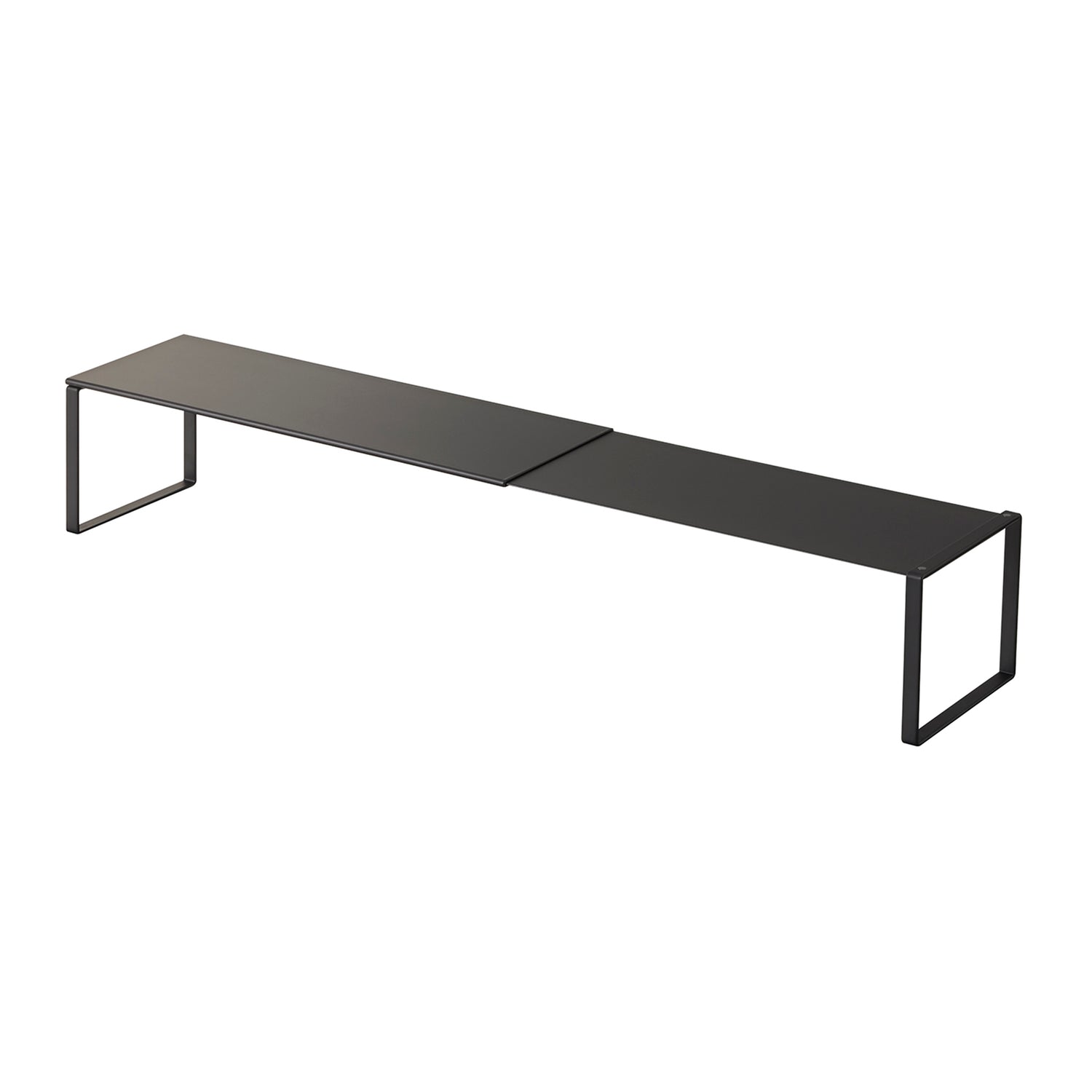 Hold skoene ryddig organisert med en praktisk skohylle i sort stål som passer perfekt i skap, garderober eller i gangen. Hyllen kan enkelt trekkes ut i bredden slik at du får plass til flere par, og den kan stables i høyden når du trenger en større løsning.