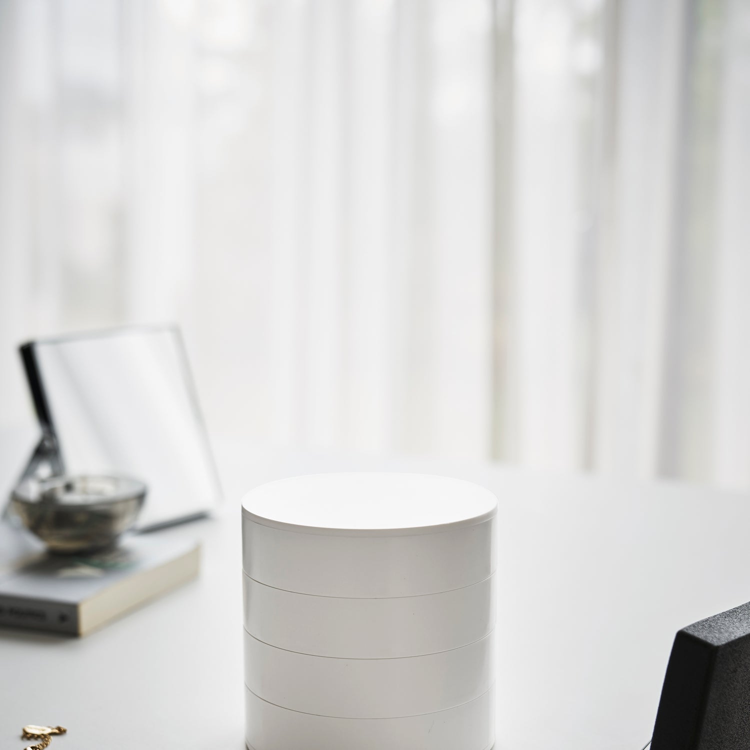 Den kompakte og minimalistiske designen passer perfekt på nattbordet, sminkebordet eller i garderoben. Innsiden er fôret med mykt materiale for å beskytte smykkene mot riper. Perfekt for både hjemmebruk og som en elegant gaveidé.