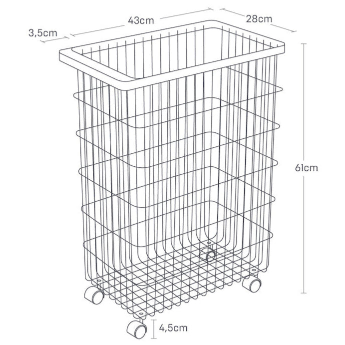 Hold vaskerommet ryddig med vår skittentøyskurv på hjul i sort metall. Den åpne konstruksjonen gir god ventilasjon til klærne, slik at de holdes friske frem til vask.