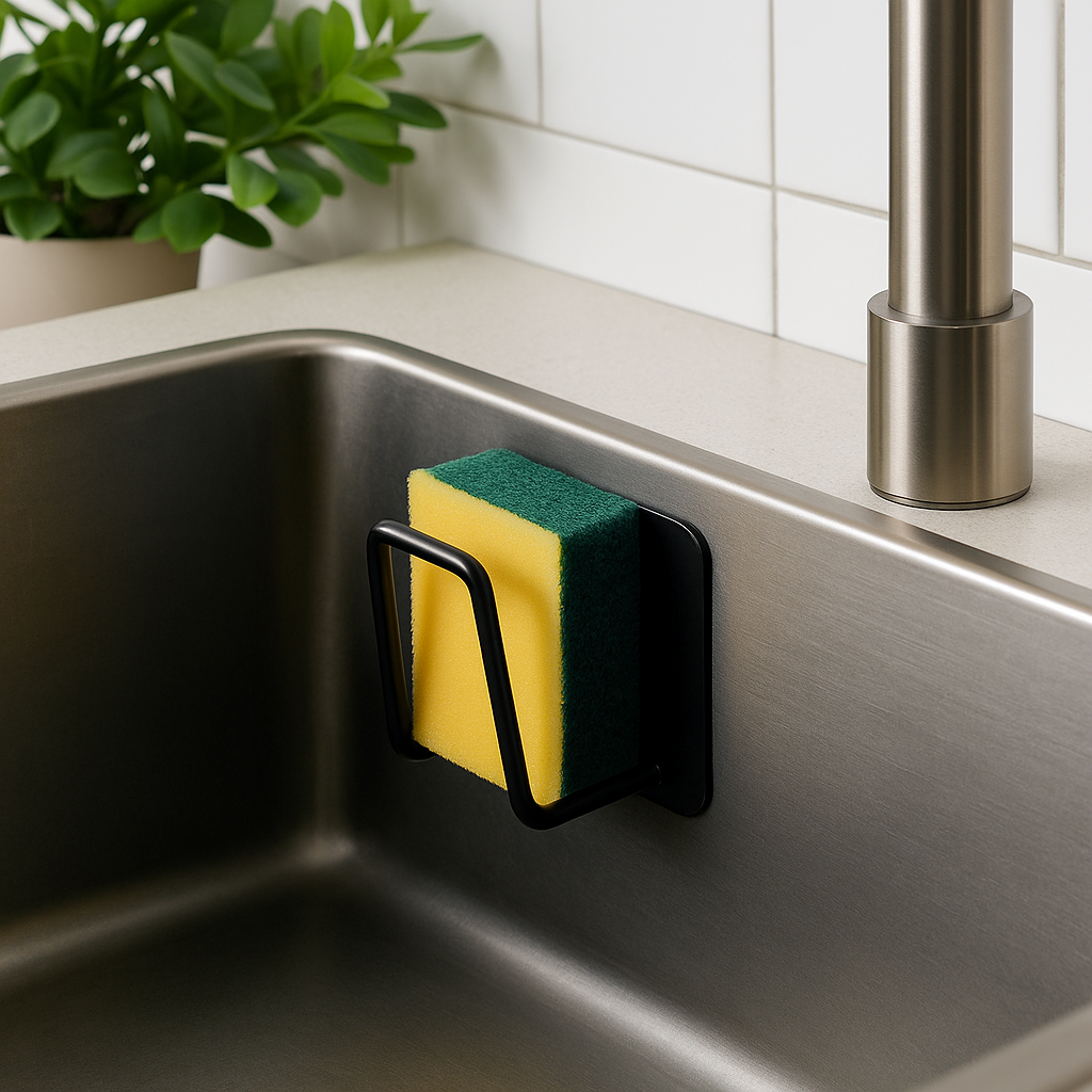 Med denne praktiske knaggen blir det enklere å holde orden på kjøkkenet eller på badet. Denne selvklebende knaggen er designet for å gi svampen en fast plass, slik at den tørker raskere og er lett tilgjengelig når du trenger den. Knaggen festes enkelt på glatte overflater som fliser, glass eller metall uten behov for verktøy.