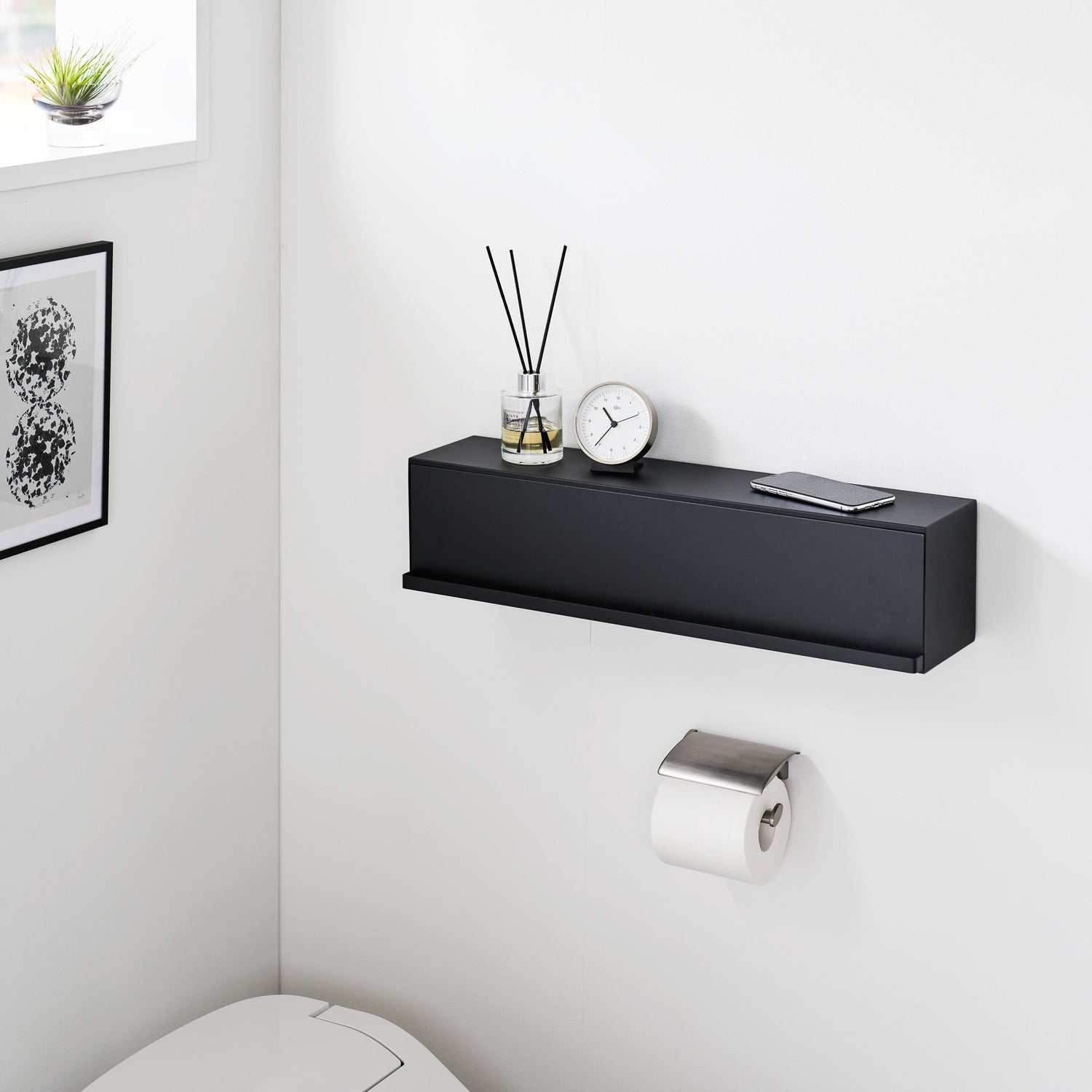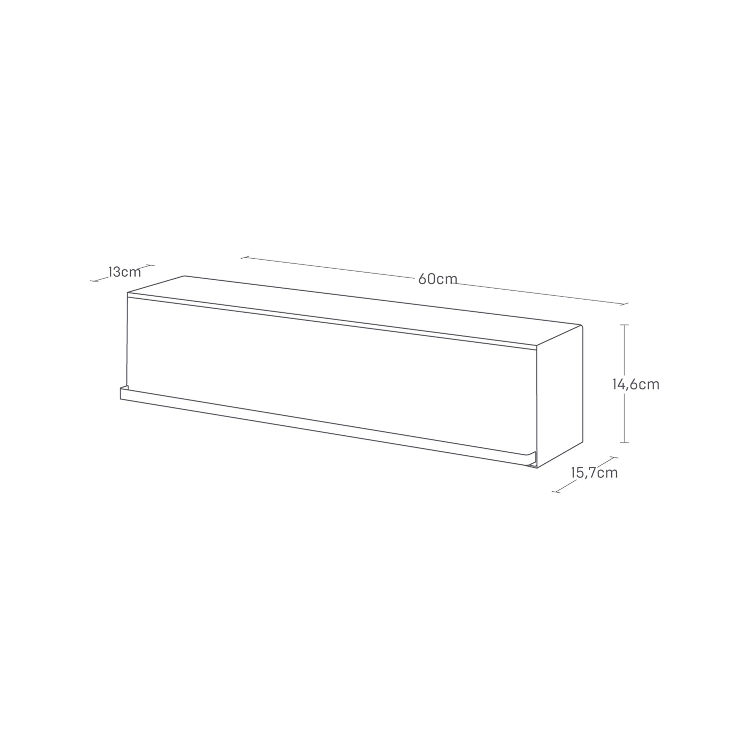 Smart oppbevaringsboks til vegg med en praktisk klaff som holder innholdet skjult. Perfekt størrelse til å gjemme ekstra doruller eller på kjøkkenet til krydder.