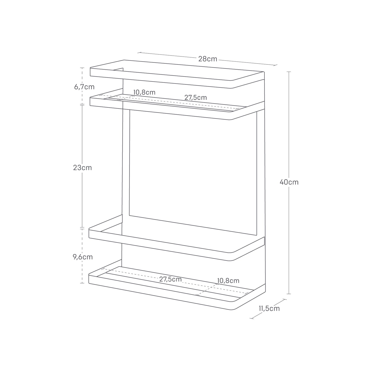 Magnetisk oppbevaringshylle hvit 28 x 11,5 x 40 cm