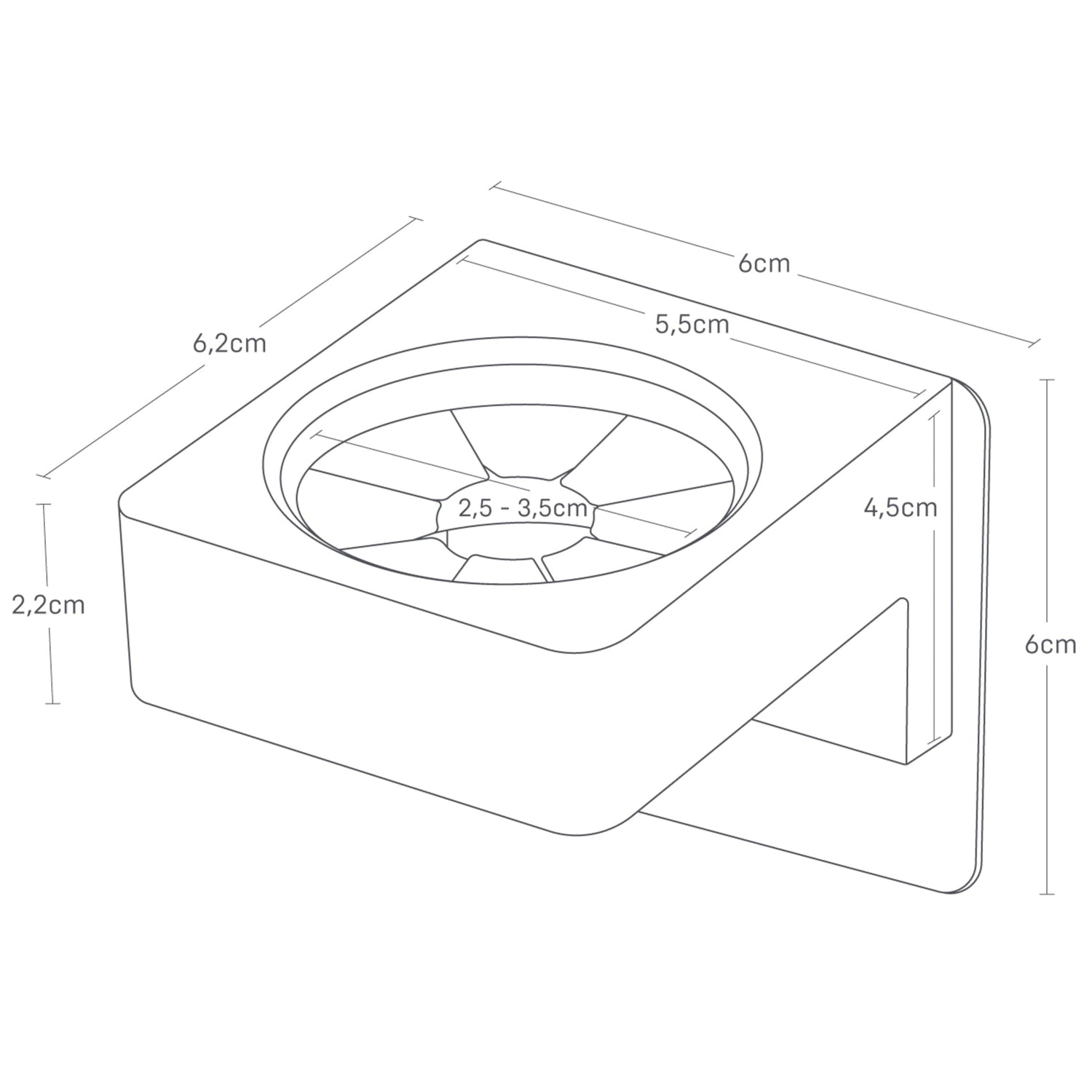 Den fleksible åpningen holder gjenstander som tannbørster, kjøkkenredskaper eller ladekabler sikkert på plass. Enkel montering uten behov for verktøy eller boring.