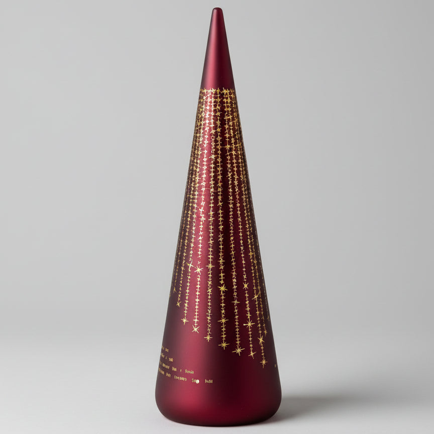 Rød kjegleformet LED-lykt med teksten Det lyser i stille grender