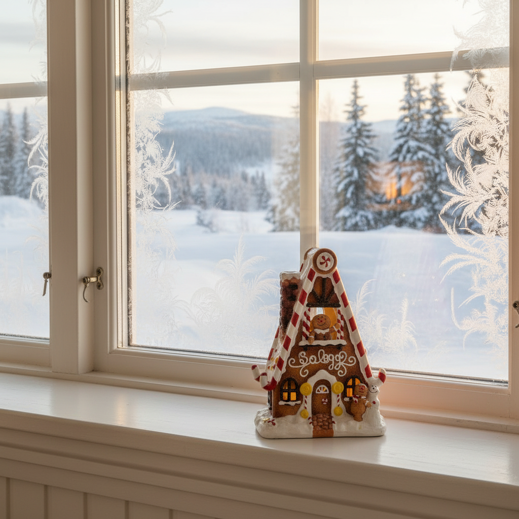 - Design: Klassisk pepperkakehus med detaljerte detaljer