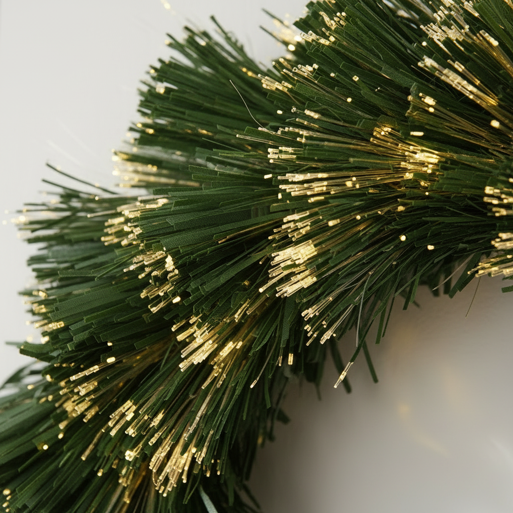 Skap ekte julestemning med denne grønne fiberoptiske kransen med varmhvitt lys. De små lysene glitrer vakkert mellom de tette grenene og gir en lun og innbydende atmosfære.