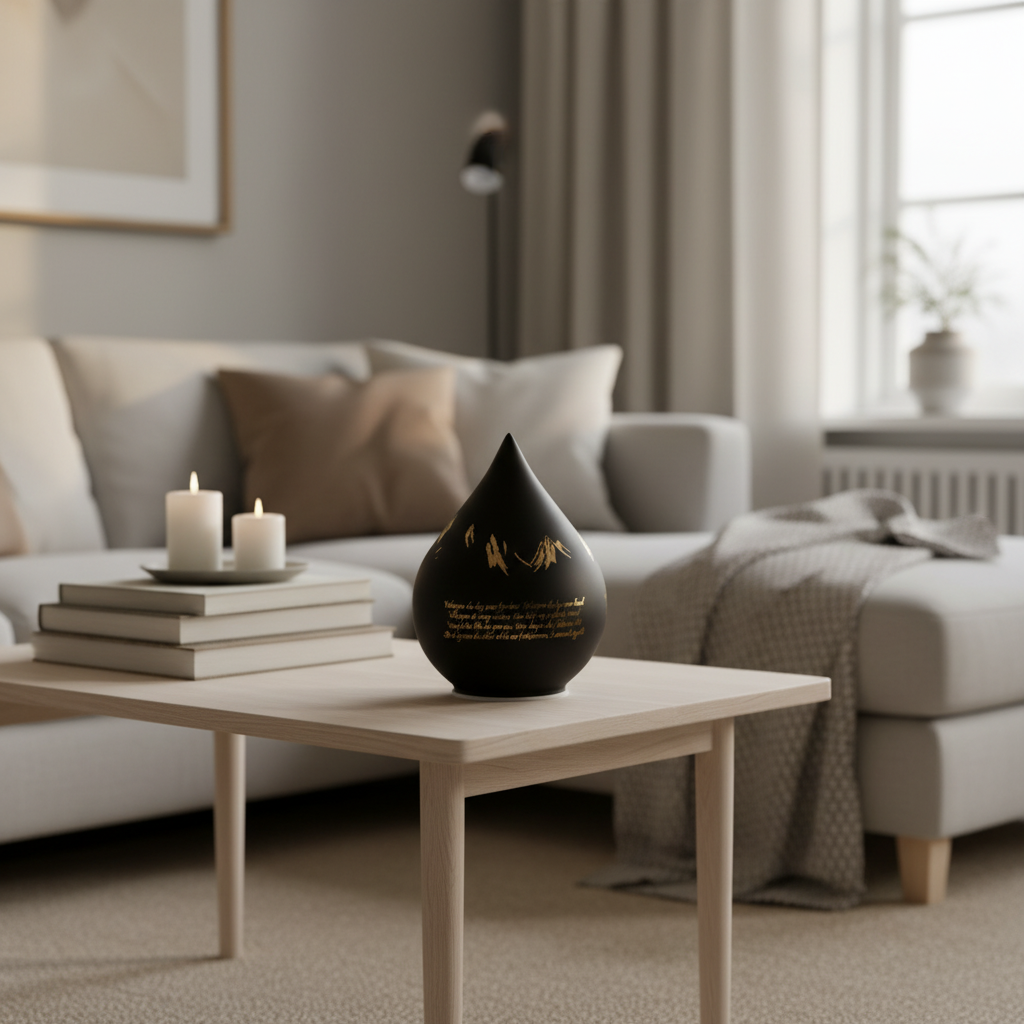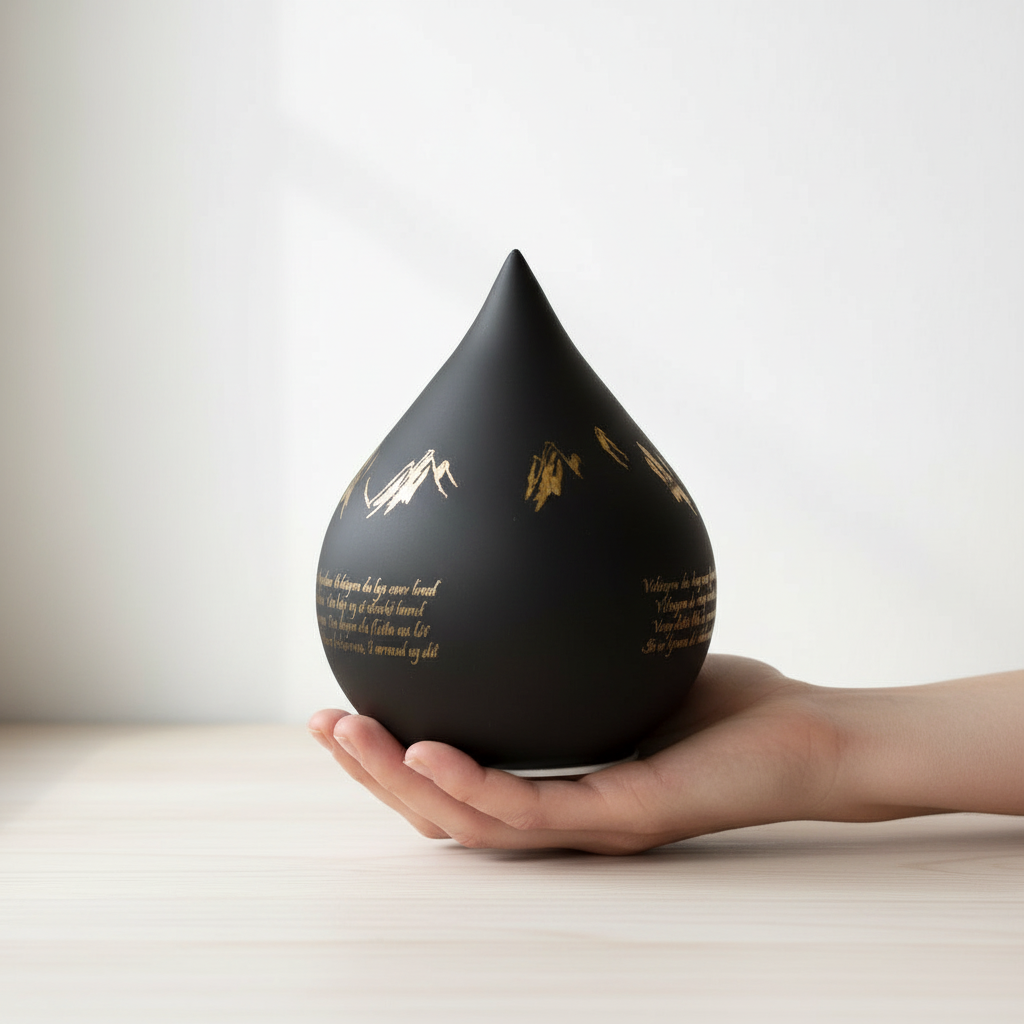 Lyslykt LED Nord norsk dråpe er en stemningsfull dekorlykt inspirert av nordnorsk natur og kultur. Den har et utskåret landskapsmotiv i metall som skaper et varmt og levende uttrykk når LED-lyset tennes. På lykten finner du også en vakker nordnorsk salme forfattet av Vidar Vedbjørn Hoff.