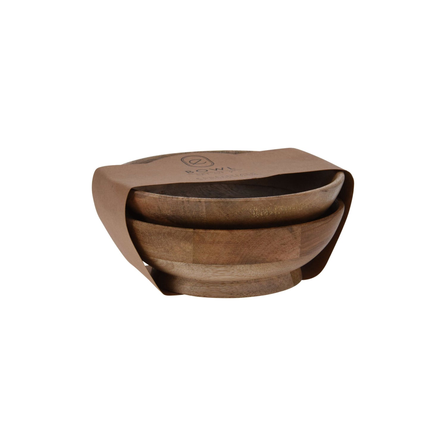 Dette settet består av to håndlagde skåler i vakkert mangotre, perfekt til servering eller som dekor.