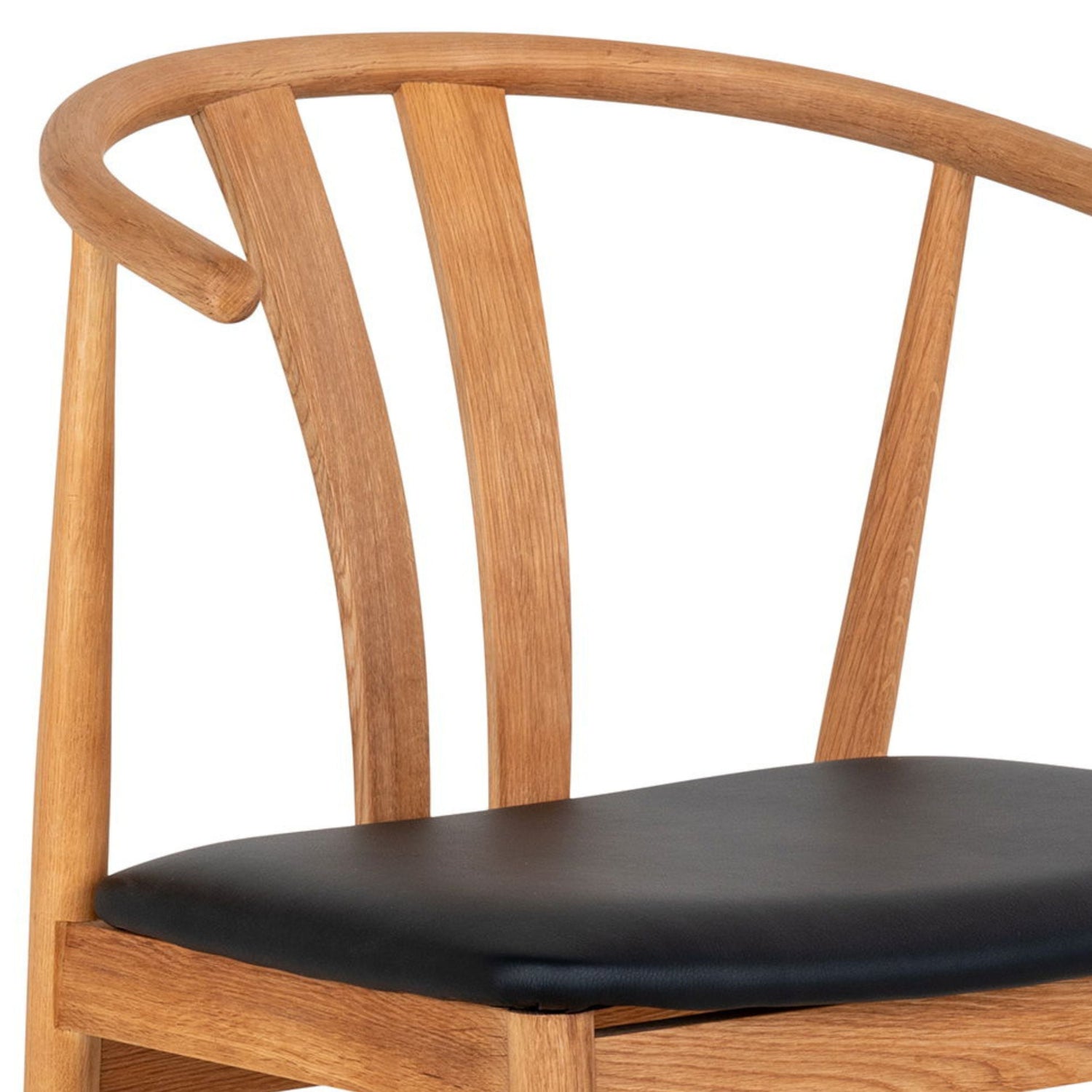 Stolen har et komfortabelt sete i slitesterkt PU-skinn og skum med høy tetthet som gir god sittekomfort. Med elegant design og solide eikeben er den et perfekt valg til spisestuen.