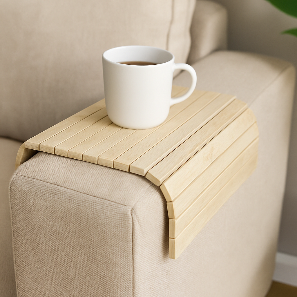 Armlenebrett er den perfekte hjelperen når du sitter på sofaen. Den skaper et stabilt underlag på armlenet som kan brukes som ett ekstra bord. Finnes i sort, brun og natur med en moderne stil. For deg i det kreative hjørnet kan brettet også limes på møbler for å oppnå spileeffekt.