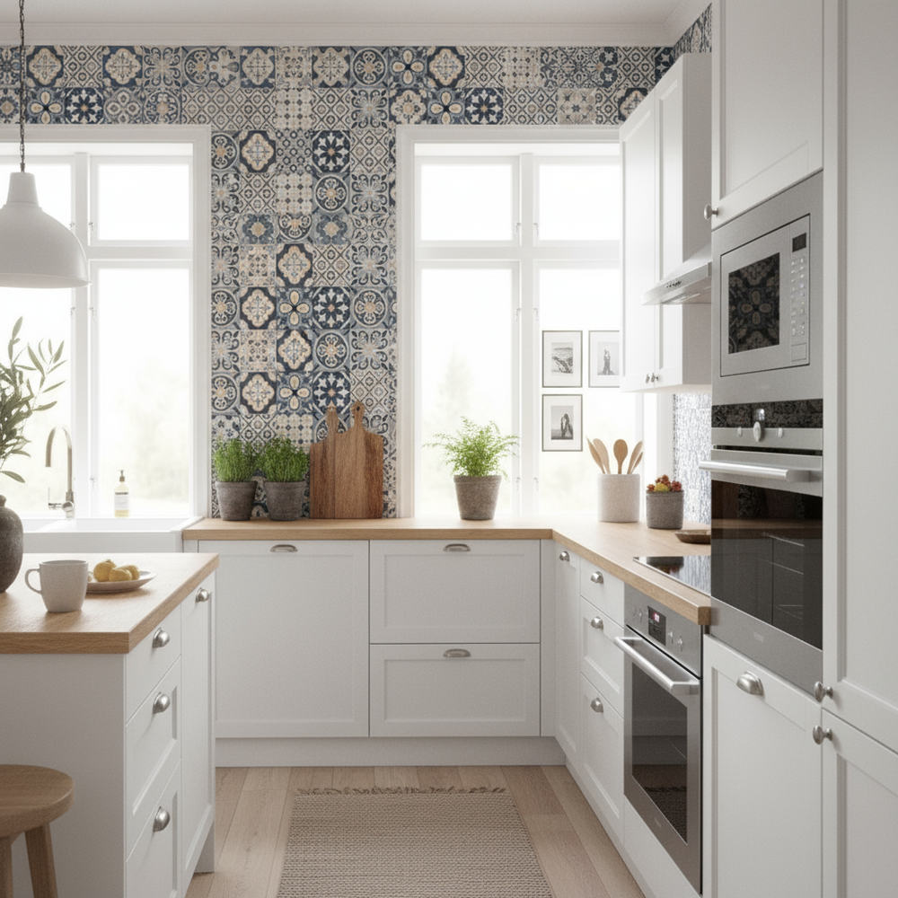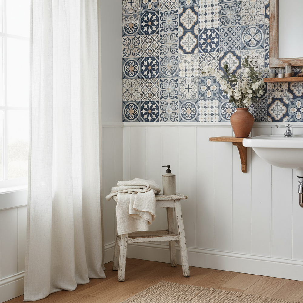 Cassablue tiles kontaktplast er en moderne folie som etterligner marrokanske fliser. Denne flotte folien er perfekt til å fornye kommoden, nattbordet eller å ha over kjøkkenbenken!