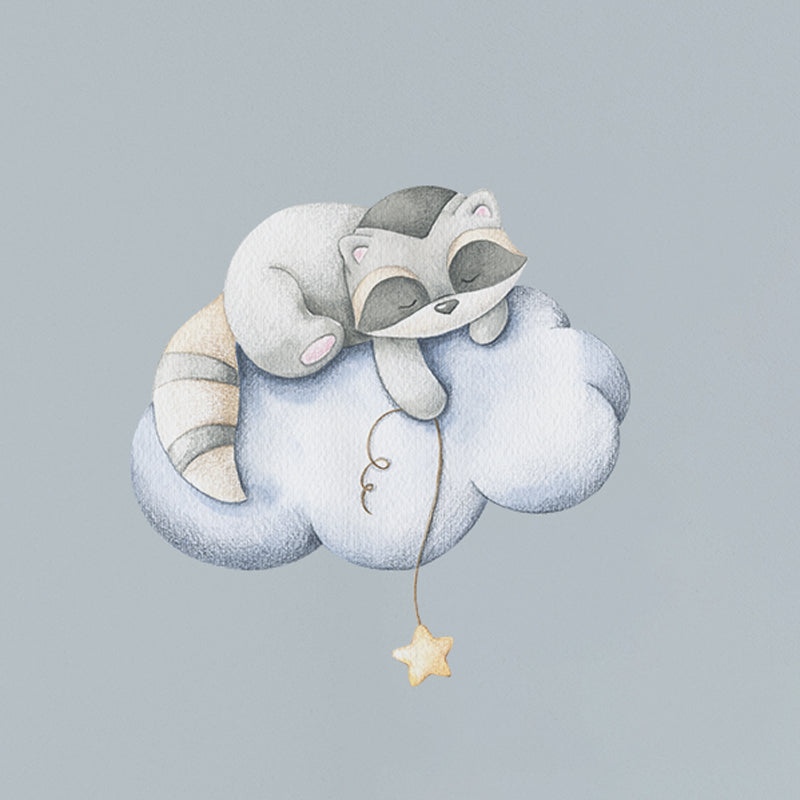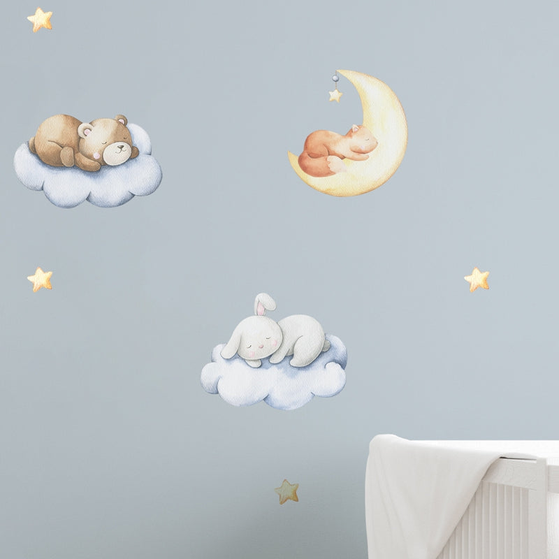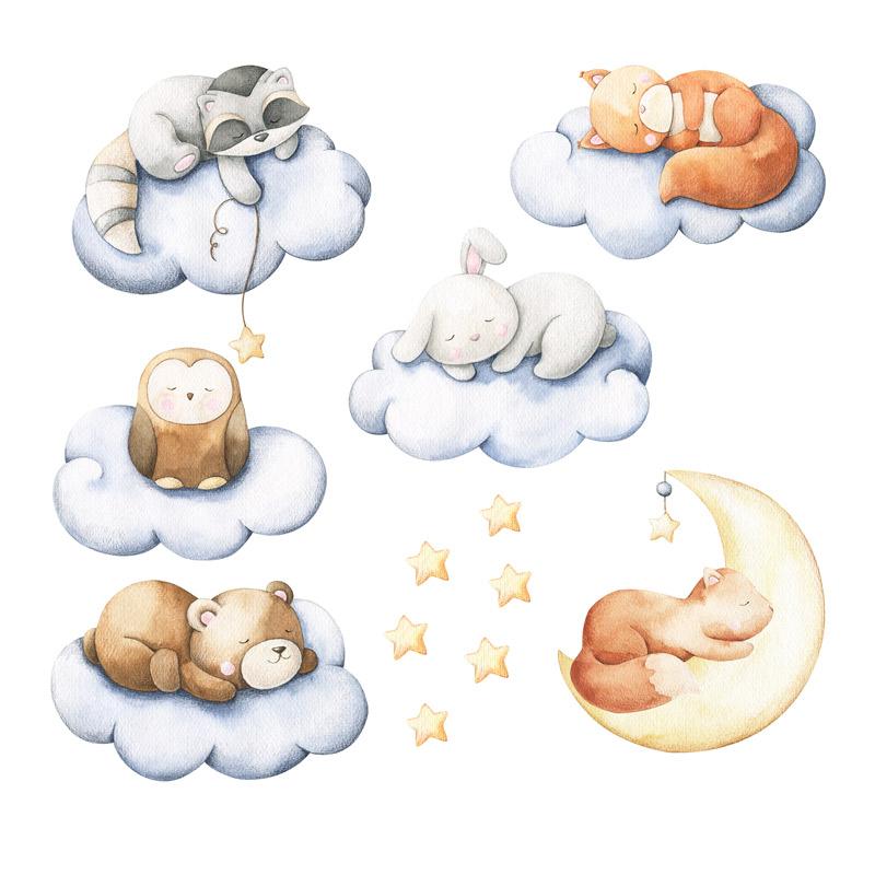 Pakken inneholder: 1 bamse, 1 kanin, 1 rev, 1 vaskebjørn og 1 ugle alle sovende på en sky. 1 rev på en måne og 6 stjerner.