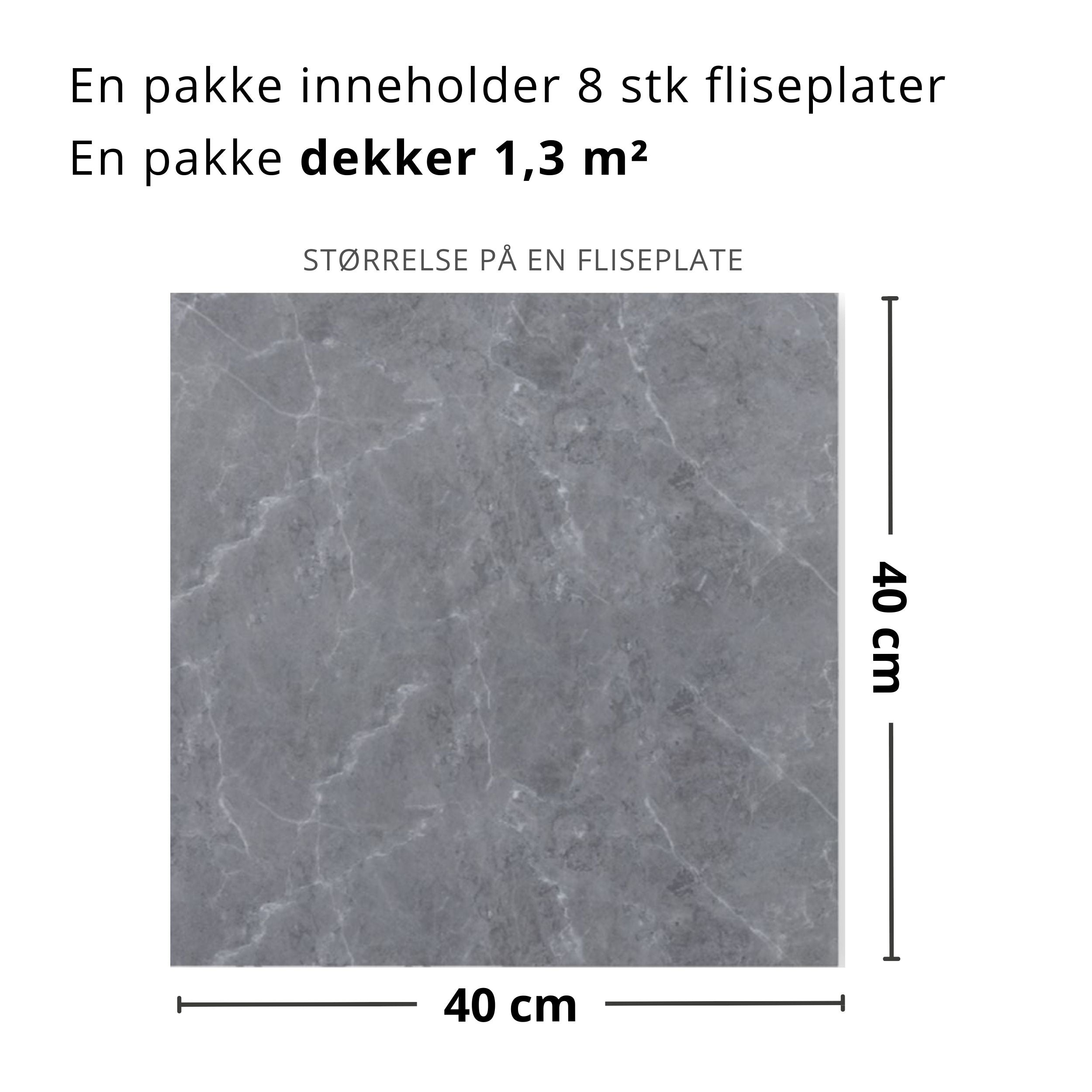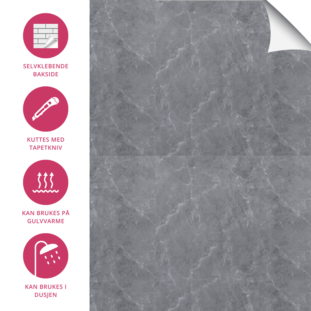 Har du lyst på nytt gulv på badet? Eller kanskje du har lyst på nye fliser i dusjen? Endelig er løsningen her! Disse innovative selvklebende flisene kan festes rett på ditt gamle underlag, til og med på gulv med varme, laminat og i dusjsonen. Ja - du leste riktig! Disse flisene kan brukes på alle slette underlag på både vegg og gulv
